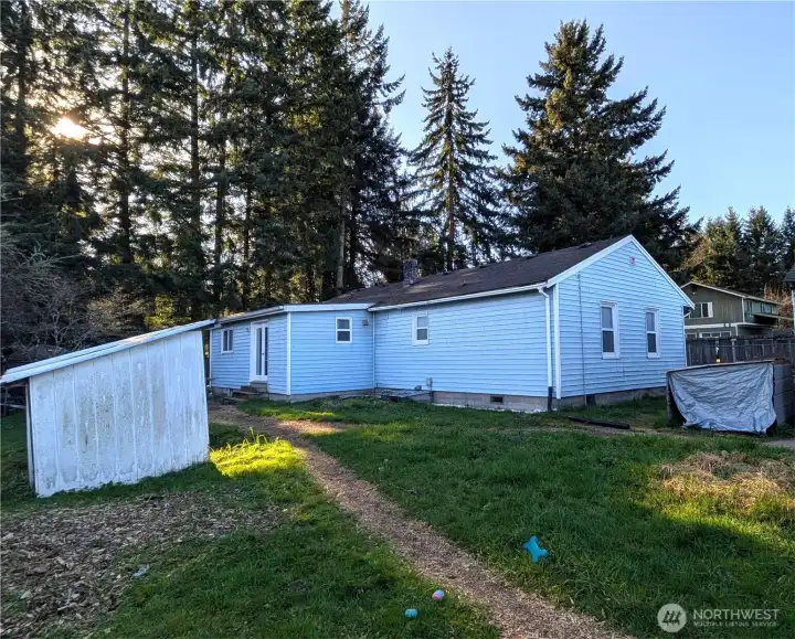 Discover a rare opportunity in Olympia's highly desired South Bay area. Located in a prime NE Olympia UGA-influenced neighborhood, this cozy and livable rambler is ready for your vision. With a little TLC, this home offers the perfect canvas to renovate, refresh, and build instant sweat equity. This 3-bedroom, 2-bath, single-story home features a spacious kitchen, generously sized bedrooms, two full bathrooms, and a welcoming living room with a wood-fired stove. The 1,394 sq ft home sits on a deep-set, level, and usable 0.86-acre parcel, providing exceptional privacy with few neighboring homes - an ideal balance of seclusion and convenience. Enjoy a fully-fenced backyard, detached 528 sq ft garage/shop for storage or hobbies, and ample space for gardening and RV or boat parking. The expansive lot offers room to breathe and endless possibilities. Ideally located just minutes from Downtown Olympia, Chehalis Western Trail, shopping, medical services, and the I-5, this property combines tranquility with easy access to everyday amenities. There's also value in the land - zoned R-4-8, offering potential for future development (buyer to verify all options to their satisfaction). This unique property is being sold as-is and presents an excellent opportunity for investors or a homeowner seeking customization and long-term potential. Enjoy quiet streets, a peaceful setting, and the chance to own in a sought after neighborhood - bring your ideas and make it your own.