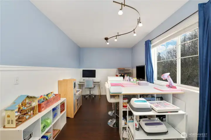 Bright, spacious, and backing to green space, this 4-bedroom, 2.5-bath Horizon Pointe home is a standout! Soaring ceilings and sunlight-filled architecture create an inviting feel throughout. Enjoy a large family room, formal dining area, and a versatile downstairs office or bedroom. A charming craft nook, two walk-in closets, and abundant storage add everyday convenience. The 3-car garage with tandem space offers room for vehicles, hobbies, or gear. Step into the fully fenced backyard with direct gated access to green space.
