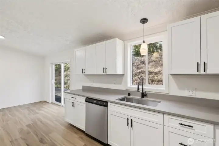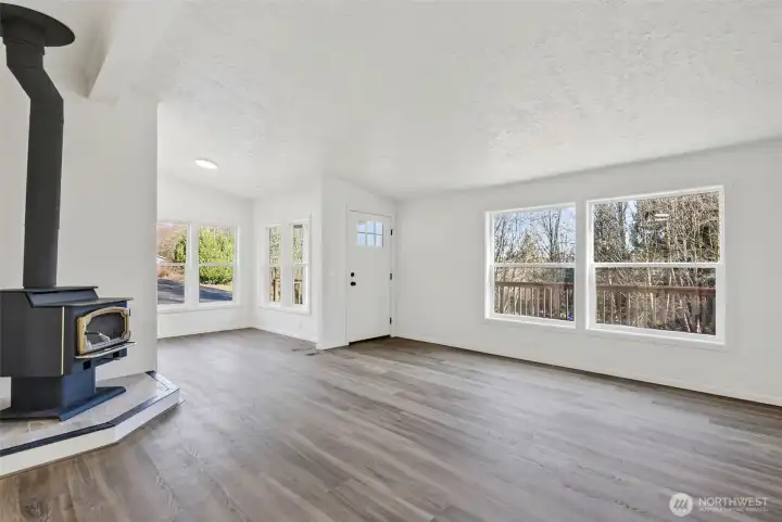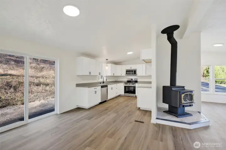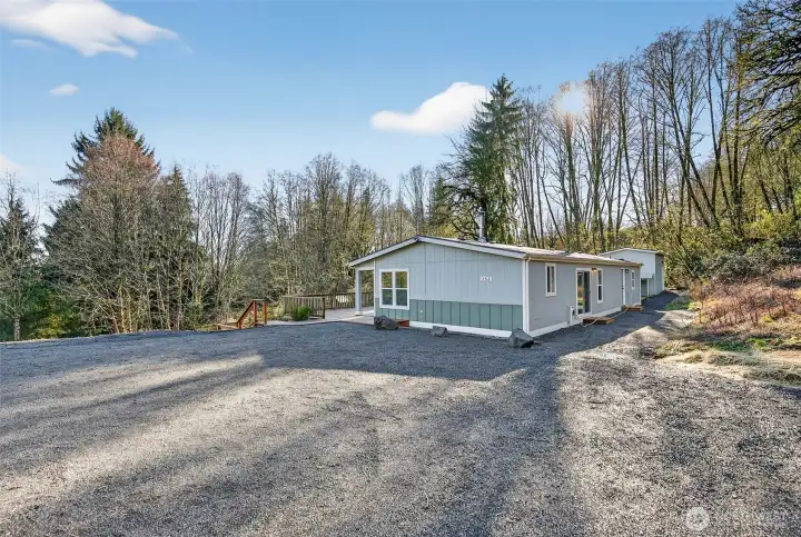 Tucked away in a quiet rural setting just outside of town, this fully renovated 3-bedroom, 2-bath home offers privacy, space, and a fresh start on over 2.5 acres. The interior has been completely refreshed and feels clean, bright, and welcoming, featuring new vinyl windows, sleek laminate flooring, and fresh carpet throughout. The open living area is centered around a cozy wood stove and flows easily for everyday living. The kitchen has been thoughtfully updated with quartz countertops, soft-close shaker cabinets, and stainless steel appliances, combining modern style with functionality. The layout is simple and comfortable, offering well-designed living spaces throughout the home. Major updates include a new roof, a brand-new septic system, and a newly built deck, providing peace of mind and added outdoor living space. Outside, the property features a medium-sized shop and an additional work shed, along with open land and wooded surroundings that create a peaceful, private setting. A rare opportunity to own a truly move-in-ready home on private acreage—seize it while it lasts.