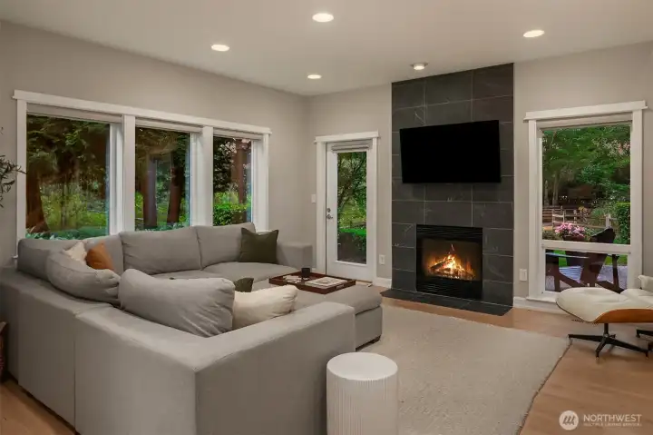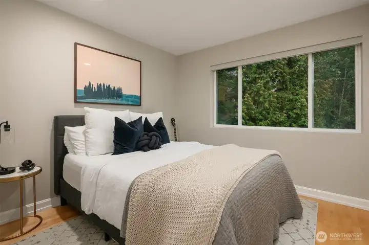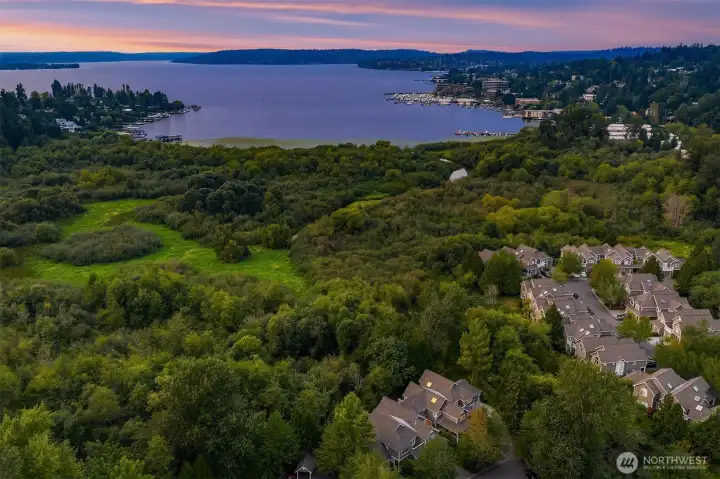 This completely renovated residence lives like a single-family home and offers grand, light-filled interiors surrounded by lush green space. Expansive great room w gas fireplace & brand new kitchen w quartz countertops, large pantry and stainless steel appliances blend function & style for seamless living and entertaining. Three large bedrooms upstairs alongside fully remodeled bathrooms, including a primary suite w vaulted ceilings & 5-piece bath. Rare-to-find long private driveway w parking for 4+ cars & a 2-car garage. Enjoy an incredible setting surrounded by nature; private patio backing to protected greenbelt & neighborhood-only pathways. Ideal location w easy access to 520 and top rated Lake Washington schools.
