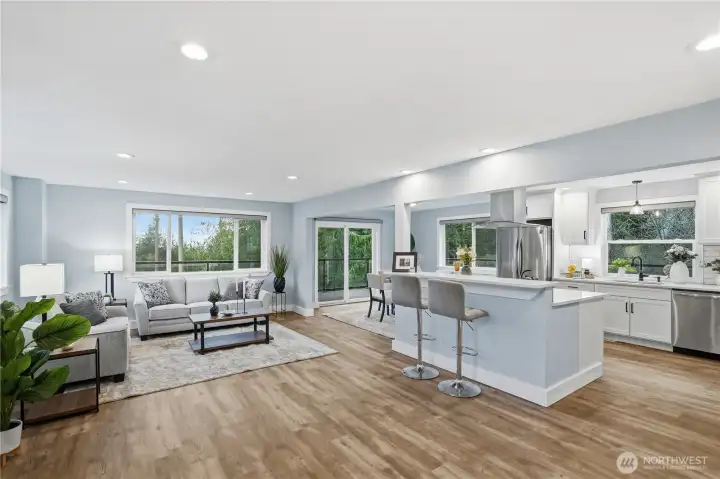 Beautifully upgraded home with over $300,000 in interior and exterior improvements. Features approximately 1,200 sq ft of outdoor deck space, including a custom wrap-around deck off the primary bedroom with Mt. Rainier and peekaboo water views—perfect for enjoying stunning sunrises. Inside offers custom blinds throughout with remote-controlled blackout shades in the primary suite. The property includes a brand-new paved and seal-coated driveway with parking for up to 10 cars, plus a large garage with epoxy flooring, custom lighting, &EV charging. Spacious backyard, large basement for storage, and located in a quiet, peaceful neighborhood just minutes from shopping and dining. Property includes a 600sft basement with the potential of being finished out or the use for storage.