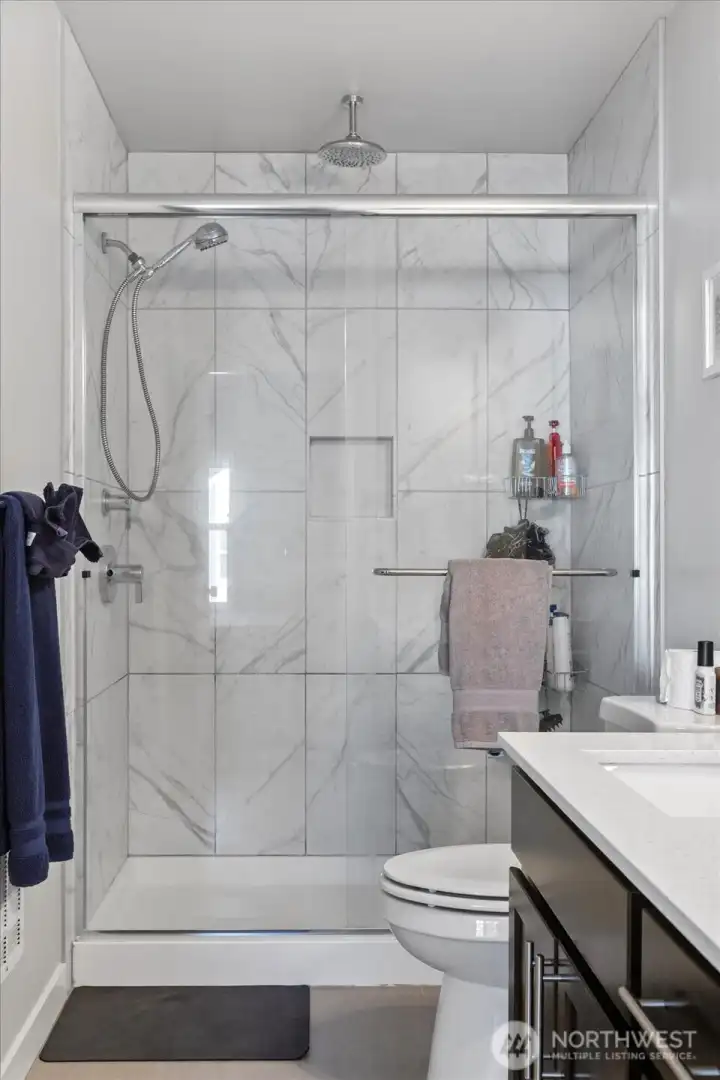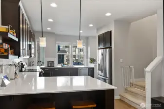 ONE YEAR HOME WARRANTY INCLUDED! Better than new and designed for the way you actually live — this stunning townhome-style residence in the Lake Stickney neighborhood delivers modern comfort, flexibility, and effortless style from the moment you walk in. The show-stopping kitchen sets the tone: quartz countertops, stainless appliances, abundant cabinetry, a walk-in pantry, and a wall of windows that flood the space with natural light. Whether you're hosting friends, helping with homework at the island, or enjoying a quiet morning coffee, this open-concept layout makes everyday moments feel elevated. Durable LVP flooring throughout the main and lower levels keeps things stylish and low-maintenance. With three spacious bedrooms — each featuring its own private en-suite bath — everyone gets their own retreat. Ideal for remote work, guests, teens, or multi-generational living, the layout offers rare flexibility that adapts as life evolves. Backing to a peaceful greenbelt, you’ll love the privacy and natural views while staying minutes from Lynnwood light rail, Lake Stickney Park, shopping, dining, I-5, and I-405. Energy-efficient mini-splits with A/C ensure year-round comfort. Modern, move-in ready, and perfectly positioned — this is the upgrade you’ve been waiting for.