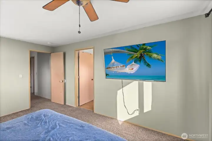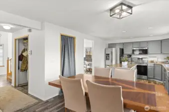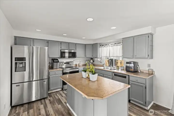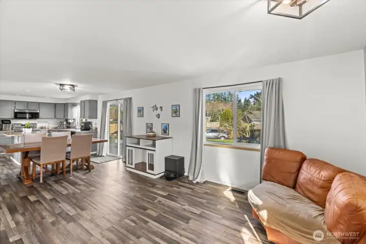 Set on a spacious shy half-acre lot at the end of a cul-de-sac, this bright and inviting 4-bedroom, 2.5-bath home offers a flexible, well-designed floor plan filled with natural light. The open-concept kitchen features stainless steel appliances, island for added prep space and seating, and opens to the great room with a cozy gas fireplace. Other amenities include a newer roof (2018), vaulted ceilings, LVP flooring and newer siding. The spacious primary suite includes a 5-piece bath, walk-in closet, and a peek-a-boo view of Mt. Rainier! Step outside to an expansive, fully-fenced backyard featuring a large patio ideal for BBQs, gatherings, or evenings spent outdoors around the fire pit. Dedicated RV parking with a 50-amp hookup adds extra convenience. With room to play, garden, or entertain, this outdoor space truly extends the living area and offers endless possibilities! Welcome Home!