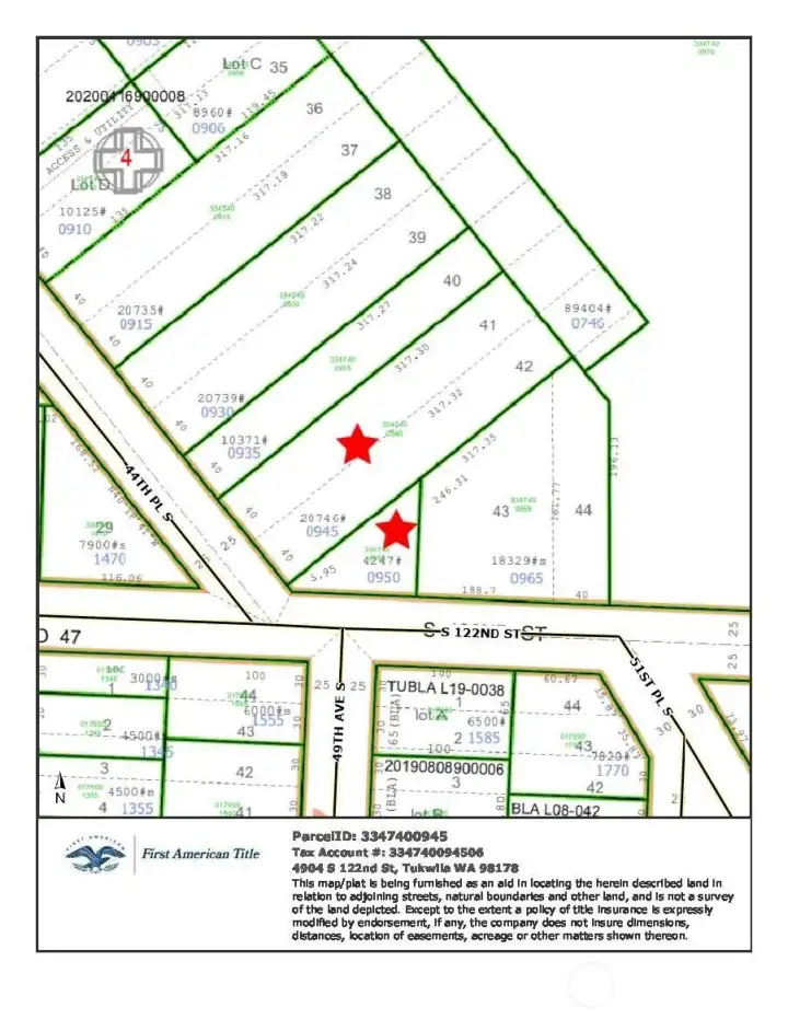Builders and Investors come see these great properties with 2 tax Id numbers, 3 lot 41-43 and a level lot size total of 24,993 sqft. Must buy this together with the listing next door MLS#2469173 and have a shy acre at 43,322 sqft. Being sold AS-IS and Cashout or fast close Only as these longtime owners of 40yrs are ready to move on to their new home, they wrote CTG. Sewer is in the street. 3-bedroom, 1 bath home with a 20x30' 2 car garage, 12x20' carport, 25x30 barn and a 12x25 carport. House has gas heat. Located in the Amazing area of Allentown, with parks and active community center nearby. Just mins to Seattle, I-5, 405 and airports. Buyers to verify everything to their satisfaction. Call your Brokers to see these before they are gone!