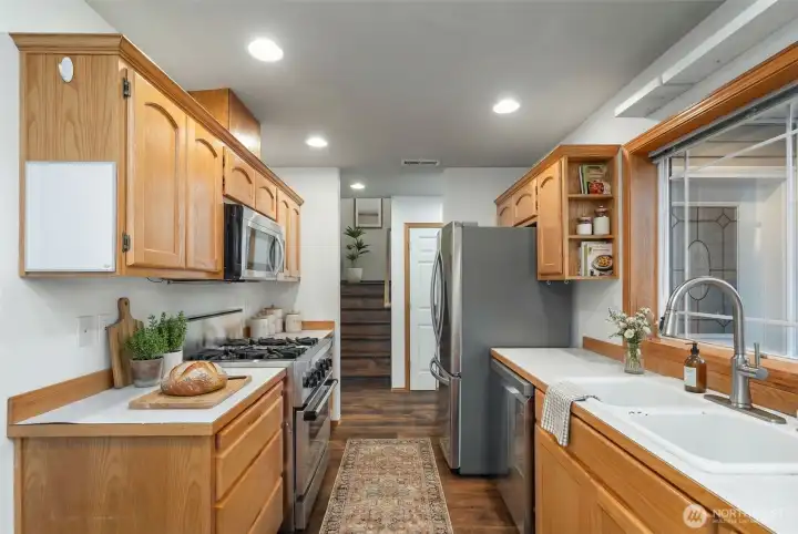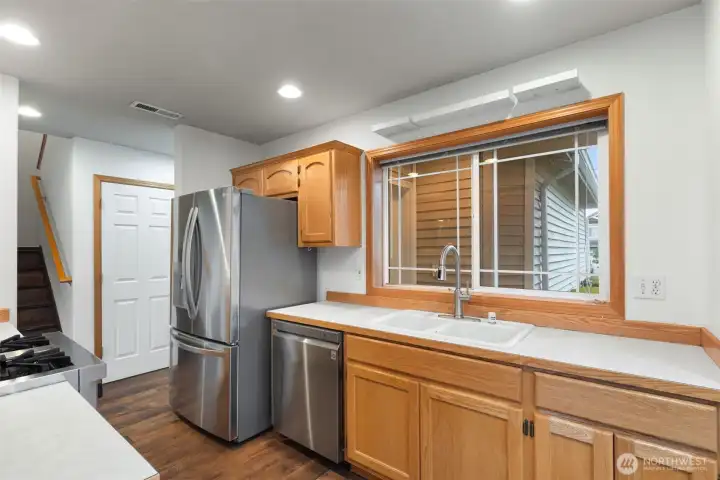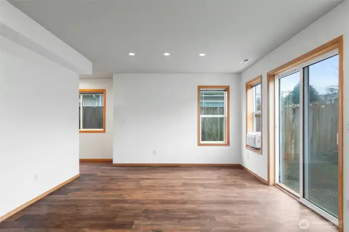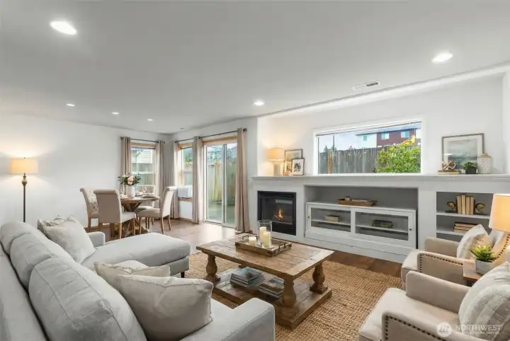 Must see! Light and bright 3-bed, 2.25-bath townhome in a small 10-home Lynnwood community. Spacious main-level living and dining rooms with brand-new hardwoods and fresh paint throughout. Oversized windows overlook a private backyard and patio. Main floor features built-ins, a cozy gas fireplace, and a gas cooking range. Comfortable year-round with AC on both levels. Upstairs offers three bedrooms and two baths, including a beautiful primary suite, brand-new carpet, and a full-size washer and dryer. Home includes a two-car garage plus extra driveway parking. Prime location just minutes from Alderwood Mall, Lynnwood Transit Center, Costco, shopping, dining, and more, with easy I-5 and I-405 access, making work from home or commuting a breeze.The roof is scheduled to be replaced within the next two years. Reserves are in place. Following completion, the HOA dues are expected to decrease from $290 per month to approximately $100 per month.
