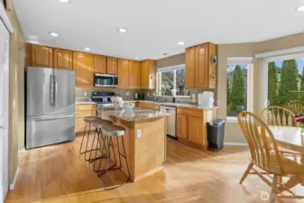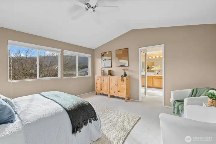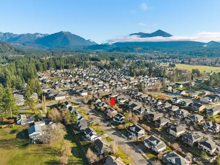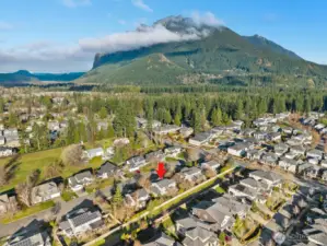 Welcome to this wonderfully maintained home in the desirable Si View community of North Bend. Just minutes from downtown North Bend, this established neighborhood is framed by breathtaking mountain scenery, with spectacular views of Mount Si right outside your front door. This thoughtfully designed home offers two primary bedrooms with en-suite bathrooms, including a main-floor primary that provides exceptional flexibility for multi-generational living, long-term guests, or a single-level living alternative. Upon entry, dramatic vaulted ceilings create a grand first impression, leading into a formal dining room and an open-concept kitchen and living area with casual dining space—perfect for both everyday living and entertaining. A dedicated home office on the main floor adds convenience and versatility. Upstairs, you’ll find four spacious bedrooms, all showcasing stunning mountain views, including the second primary suite complete with a five-piece en-suite bathroom and large walk-through closet. A large three-car garage offers ample room for parking, storage, and all your outdoor gear. Outside, enjoy a generously sized lot with a fully fenced backyard, spacious patio, mature trees, and established garden beds. You can’t beat this location: just minutes to charming downtown North Bend, with easy access to I-90 making this a commuter’s dream. Truly a special home offering the perfect balance of everyday convenience and unmatched access to nature.