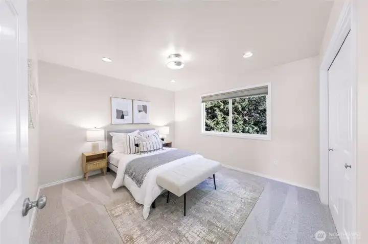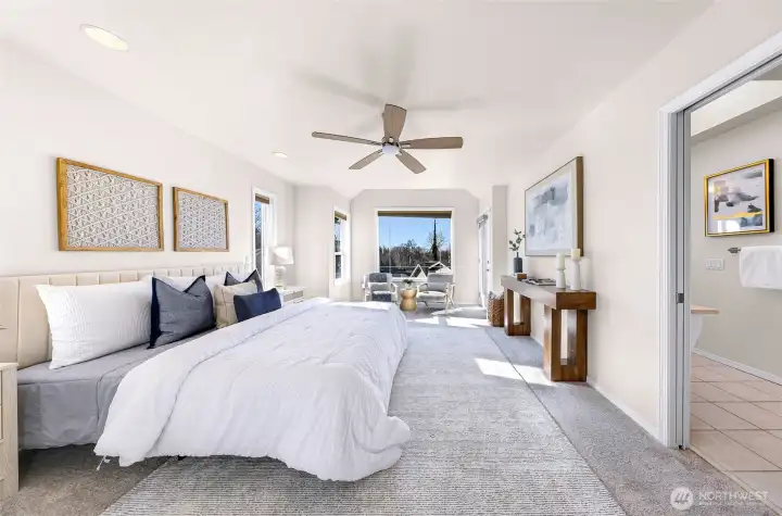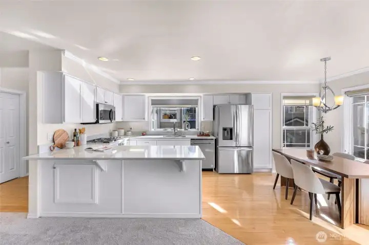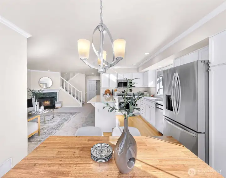 Perfectly perched above it all, this immaculate, fully renovated light-filled end-unit townhome shines with designer updates and an exceptional floor plan. Warm natural light pours into the open-concept main level, where you’ll find a beautifully updated kitchen and living space, plus a bedroom and ¾ bath—ideal for guests or a home office. The lower level features a 2-car garage and versatile bonus room, while upstairs offers a secondary bedroom with en-suite and an impressive primary retreat showcasing territorial views and a peek of Lake Washington. Multiple outdoor living spaces, A/C, full replumb, gas fireplace, and meticulous pride of ownership elevate the experience. All set in a prime Kirkland location with top-rated schools and easy access to downtown Kirkland, I-405, tech campuses, and everything the Eastside has to offer.