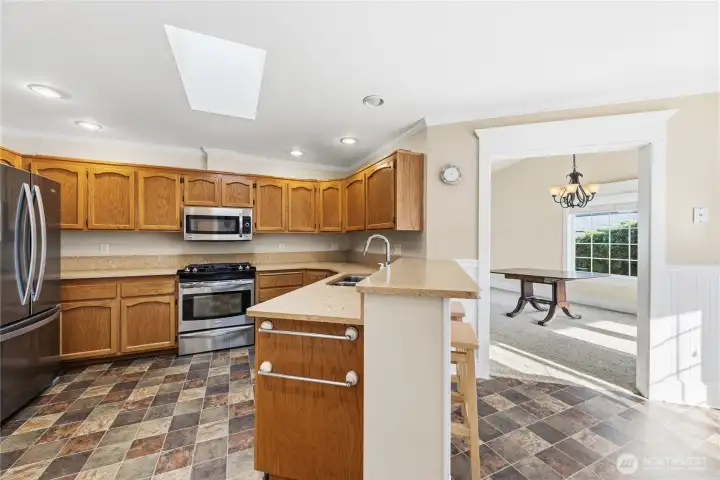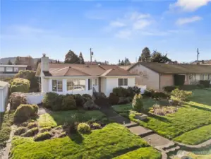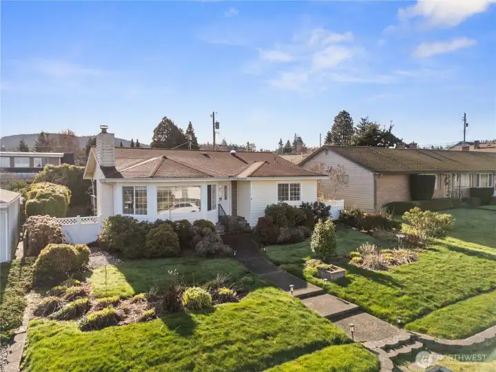 Warm, inviting, and filled with natural light, this Anacortes home offers a welcoming energy you feel the moment you step inside. Large bay windows frame peaceful neighborhood, mountain, and territorial views while creating a bright, airy atmosphere throughout the main living spaces. The cozy gas fireplace anchors the living room, making it an ideal place to relax, gather, and unwind. The flowing layout connects living, dining, and kitchen areas in a way that feels open yet comfortable—perfect for everyday living and effortless entertaining. Skylights and generous windows bring in beautiful daylight, while classic finishes and well-maintained surfaces create a timeless, move-in ready feel. Step outside to a sunny deck designed for morning coffee, summer barbecues, or quiet evenings, surrounded by mature landscaping and fruit trees that add charm and privacy. The level yard, alley access, and RV parking provide flexibility and convenience, while the attached carport offers covered parking. Located in a desirable Anacortes neighborhood close to downtown, schools, parks, marinas, and waterfront amenities, this home blends comfort, character, and lifestyle—an easy place to settle in and truly feel at home.