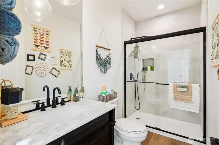 Welcome to this thoughtfully designed 4-bedroom, 2.75-bath home located in East Tacoma. The chef-inspired kitchen features stainless steel appliances, a generous island with farm sink, quartz countertops, tile backsplash, and a walk-in pantry for storage. The kitchen opens seamlessly to the living room with an electric fireplace and a sliding door leads to a covered deck, ideal for year-round enjoyment. The main level includes a bedroom, a 3/4 bath, and a laundry room. Upstairs, you’ll find 3 additional bedrooms and a full bathroom, including a spacious primary suite with a 5-piece en-suite bath and walk-in closet. An attached two-car garage adds convenience and additional storage. Situated close to multiple parks and local dining options, this home also offers quick access to downtown amenities, with the Tacoma Dome just 5 minutes away. A fantastic opportunity to enjoy modern living!