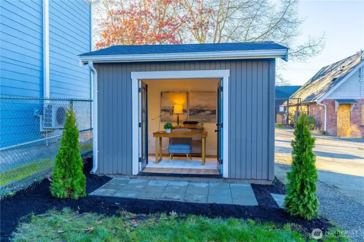 Fully permitted Craftsman with extensive updates and future development potential. Permits include new mechanicals, framing, drainage, and seismic retrofitting. Remodeled kitchen features new cabinets, quartz countertops, stainless steel appliances, and designer tile. New flooring throughout. Bathrooms updated with new fixtures, vanities, tile floors, tile surrounds, and a custom mud pan in the primary bath. Main level includes two bedrooms and 1.5 baths. Lower level offers an additional bedroom, bath, laundry, and bonus space. Upper level features a dedicated office and attic with excellent ceiling height for future expansion. Exterior upgrades include new sod, landscaped beds, paver patio, off-alley parking pad, and a detached studio shed ideal for a home office or flex space. LR zoning allows potential for one to two additional units at rear of property (buyer to verify). Feasibility study completed and available upon request.