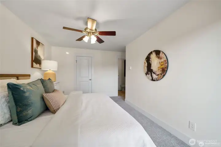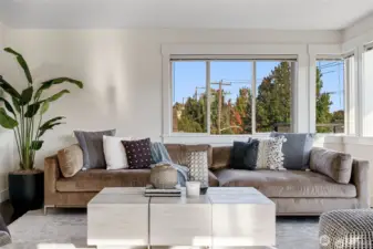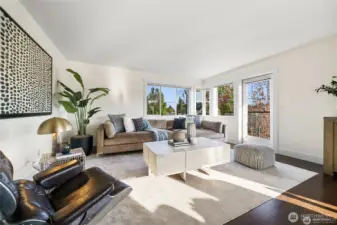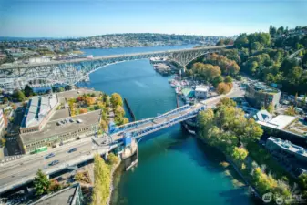 Experience elevated living in this top-floor Fremont penthouse. This private, sun-drenched corner unit shines with modern finishes and an open layout framed by walls of glass. Enjoy morning coffee or sunset views from two private covered decks. The primary suite easily accommodates a king-sized bed with a private ensuite. A second bedroom features a custom solid-wood Murphy bed, perfect for a seamless home office or guest suite transition. Located in a pet-friendly building with secure entry, an elevator, and garage parking. Just steps from the Burke-Gilman Trail, cafes, and shops in the "Center of the Universe." An effortless commute to South Lake Union, UW, and downtown. Your urban sanctuary awaits!