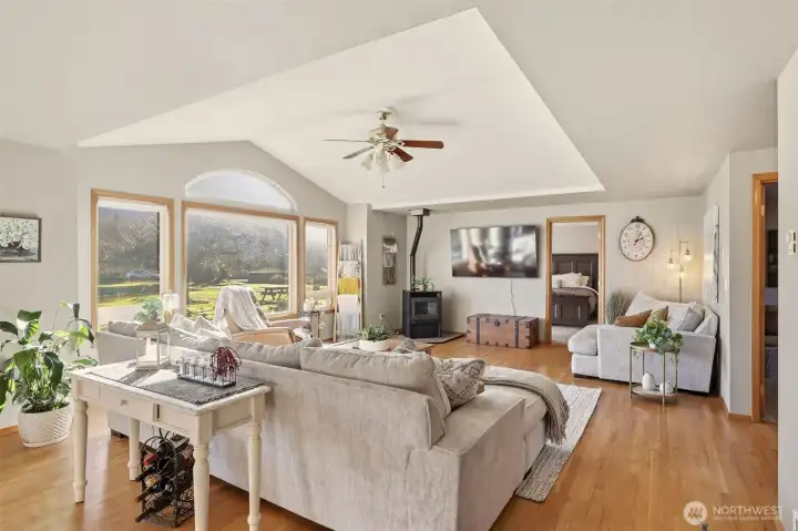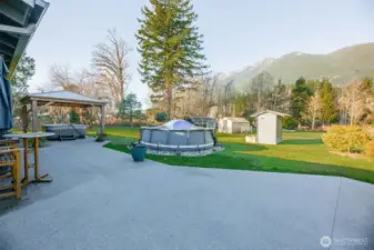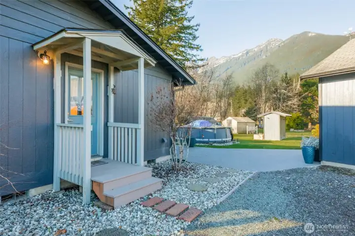 Nestled among the snowcapped peaks of the North Cascades, this extraordinary home is a sanctuary for those who seek beauty and serenity. From the moment you step inside, you’ll feel it was crafted just for you. Rich red oak hardwood floors set the tone, while breathtaking mountain views from every window create a dramatic and ever-changing backdrop. The open floor plan is designed for modern living and effortless entertaining. The spacious primary suite features a walk-in closet and a beautifully appointed ensuite. In the living room, a pellet stove adds warmth and a cozy cottage ambiance, perfect for mountain evenings. Recent updates include a new roof and carpet in 2023, along with fresh paint, a patio, gazebo, and deck in 2025. The oversized utility room offers abundant cabinetry and storage. An expansive shop accommodates two vehicles, includes an EV charging station, dedicated shop space with 220 wiring. Outdoor amenities abound: a machine shed and greenhouse for easy country living, a hot tub, swimming pool, and horseshoe pit for recreation, plus mature fruit trees, berries, garden space, and an idyllic seasonal creek. Resplendent and heart-achingly beautiful, this remarkable property must be experienced in person to be truly understood.