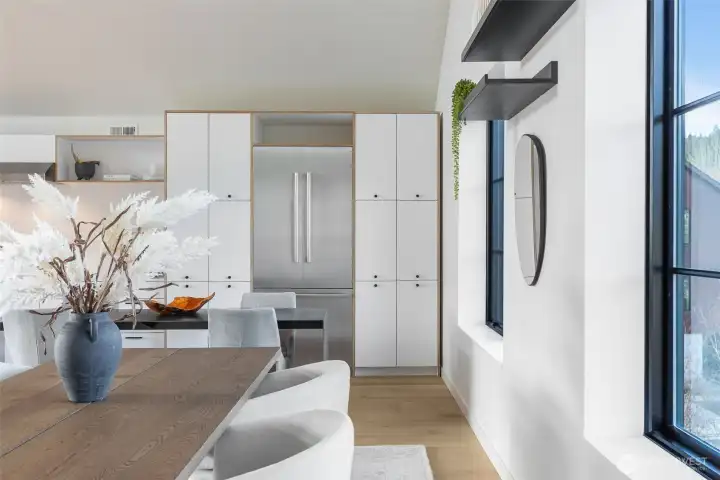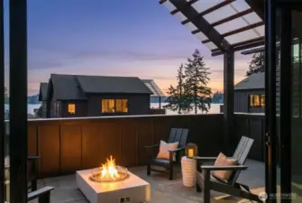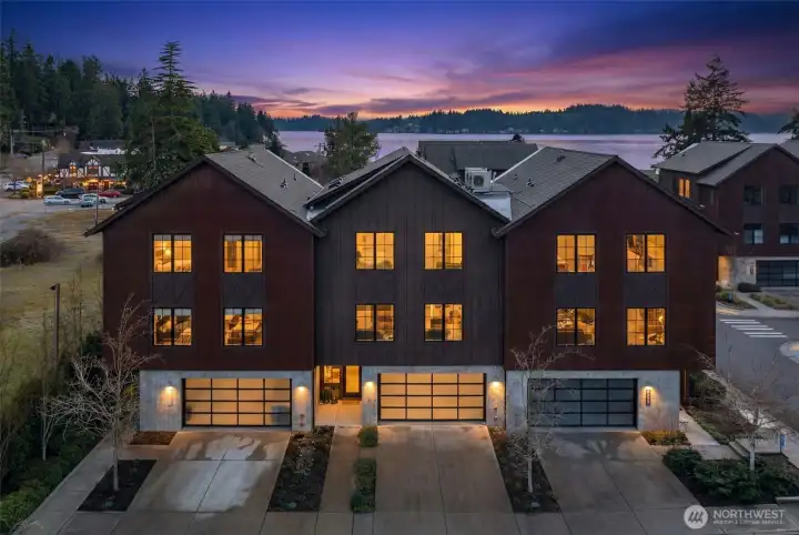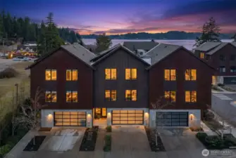 Discover the pinnacle of island sophistication in this sun-drenched, loft-inspired townhome within the acclaimed Roost community. Serviced by a private elevator the residence flows seamlessly across three levels of architectural excellence. The interior radiates a Scandinavian aesthetic, featuring soaring vaulted ceilings, reclaimed brick accents, and expansive Pella sliders that frame views of Rich Passage. The heart of the home is an entertainer’s dream, anchored by a chef’s kitchen with a massive quartz waterfall island and premium Bosch appliances. Step out onto the covered deck to enjoy year-round alfresco living by the fire pit while watching ferries glide past. The primary suite offers a spa-like escape with heated floors and a deep soaking tub, while "Level 5" finishes throughout provide a gallery-quality backdrop for your art collection. Located just steps from the vibrant Lynwood Center, Pleasant Beach Village, and a nearby playground, you are perfectly positioned to enjoy historic cinema, coffee, wine tasting, and live music, along with the scenic trails of both Fort Ward and Gazzam Lake—all while dipping your toes in the Sound each evening at sunset. This is more than a home; it is an effortless, luxurious retreat in the heart of Bainbridge Island’s most walkable enclave.