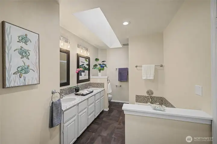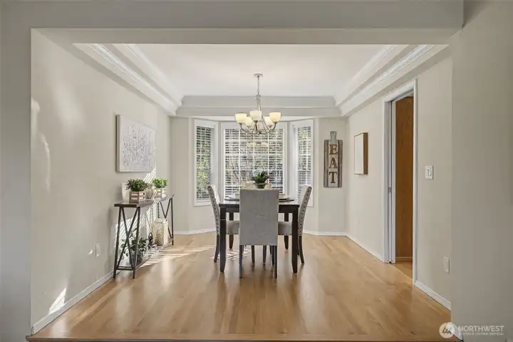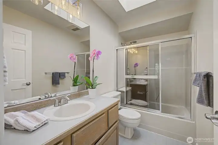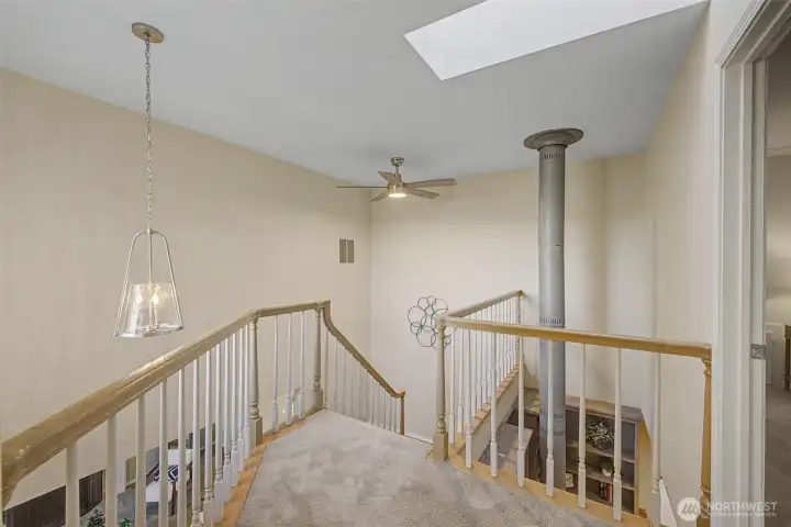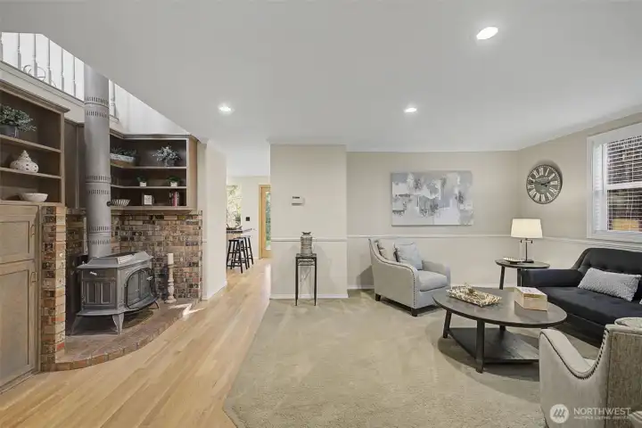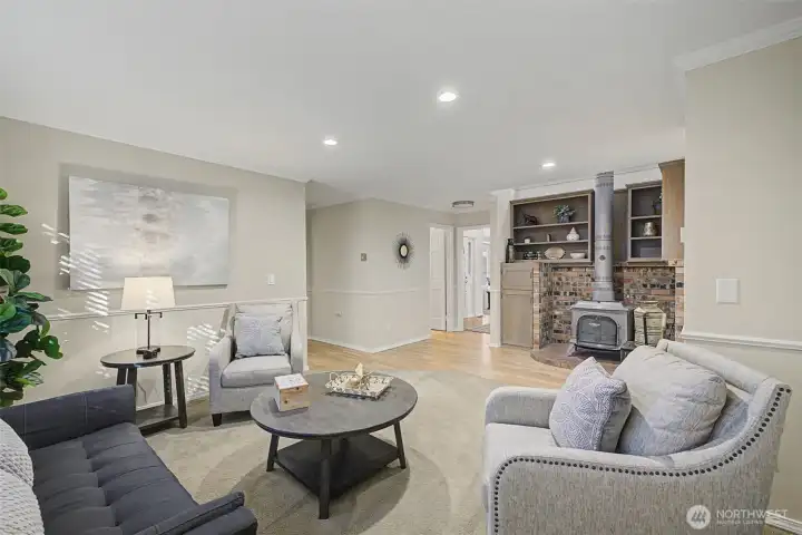 Lovely Brierwood Gem! This beautifully maintained home features 4 bedrooms and 2.5 baths, including a convenient Main Level Bedroom ideal for guests or multigenerational living. Enjoy formal living and dining spaces along with a spacious family room anchored by a cozy wood burning fireplace—perfect for everyday comfort and entertaining. Formal living room has vaulted ceilings and a gas fireplace. There are skylights through the home adding a natural lit feel throughout. The bright, open kitchen offers granite counters, a large island with prep sink, and a gas cooktop for the home chef. French doors lead to a stunning covered stamped concrete patio, creating seamless year round indoor outdoor living. The patio is also wired for a hot tub and plumbed for gas bbq. A light filled office/den just off the kitchen provides an excellent work from home space. Find an oversized utility room completed with new stainless steel sink and access to the 2 car garage. Upstairs, the generous primary suite includes a luxurious five piece bath and 2 other well appointed bedrooms. Newly refinished hardwood floors add warmth and elegance throughout the home. Outside, the well manicured yard with mature trees and plantings offers a peaceful retreat for spring and summer enjoyment.