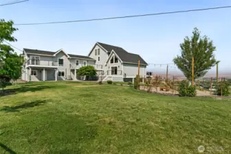 Welcome to a private oasis offering serenity, space, and exceptional craftsmanship. This remarkable home was fully remodeled with an additional 4,000 SF of new construction completed in 2012, including a new well and septic system. Thoughtfully designed, the two-story home with a fully finished daylight basement delivers comfort, flexibility, and privacy on every level—making it a perfect multi-generational home. The residence features three luxurious primary suites, each with sweeping views and access to a private deck or balcony. Enjoy four living rooms (one ideal as a theater), a spacious recreation/game room with pool table, two dining areas, and two dedicated offices for work-from-home living. A second kitchen with eating bar on the lower level is ideal for extended living, guests, or entertaining. Each level is equipped with its own laundry room, furnace, and heat pump. In total, the home offers 5.5 bathrooms, four decks, and two balconies capturing beautiful views from every floor. The detached 3-bay garage includes its own furnace, A/C, and electrical panel. Above it sits a finished 900 SF bonus space with private exterior access—currently used as a gym—with stunning views from every dormer window. Outdoors, the 2-acre property features underground sprinklers, a tranquil fishpond with fountain, basketball court, and room to add an in-ground pool. Includes 1 share of Selah/Naches Irrigation. A rare opportunity offering luxury, privacy, and endless possibilities.