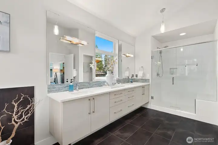This standout Sammamish home by Evoke is a rare fusion of modern Northwest architecture and refined Scandinavian minimalism. Sleek rooflines and high-efficiency engineering create a quiet, insulated sanctuary, while expansive windows and soaring 10ft ceilings throughout give the home its signature look echoing custom builds. Warm natural woods, modern tile, refined fixtures, and a cohesive palette reveal a curated touch. The main level offers a well-proportioned layout with an expansive family room, a chef's kitchen anchored by a generous waterfall peninsula, as well as dining & family rooms that both open directly to the covered deck for seamless year-round indoor-outdoor living. Upstairs, the layout is organized with clarity and purpose. A bright loft sits at the center, creating flexible space for work, play, or media. The primary suite is positioned for privacy & calm. Secondary bedrooms are thoughtfully separated & well-scaled. Outside, the home's architecture extends naturally into the landscape. The covered deck becomes a true outdoor room - protected, usable in every season. The level greenbelt backyard offers privacy yet connection, w room to personalize while holding a high score in low maintenance. Tucked on a quiet Pine Lake street, this home offers modern style, top efficiency, & a prime location near trails, top-rated schools, parks, retail, major Eastside tech hubs. A unique, elevated home in one of the most sought-after communities of Sammamish. Pre-inspected.