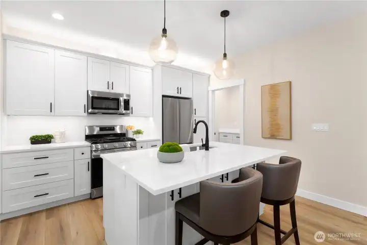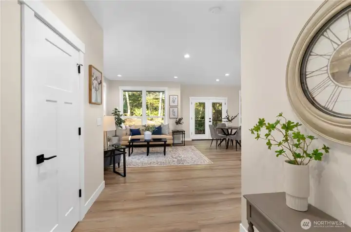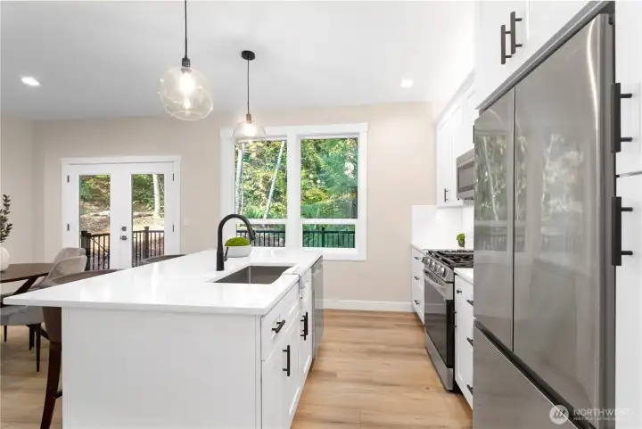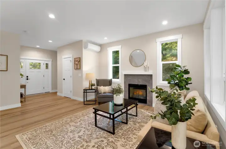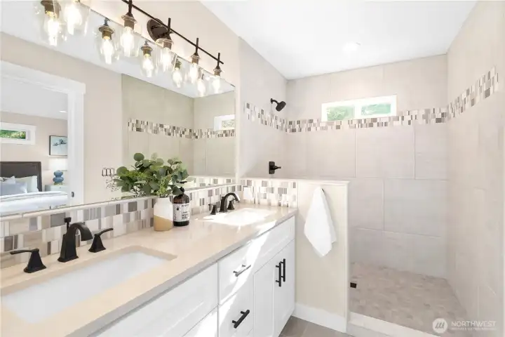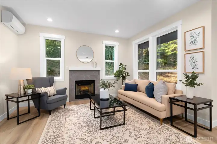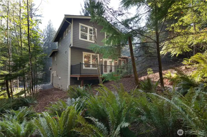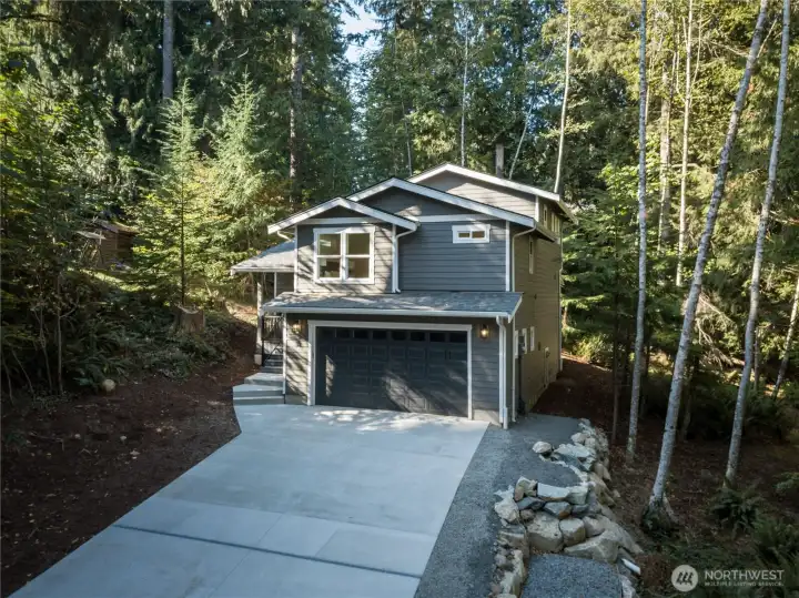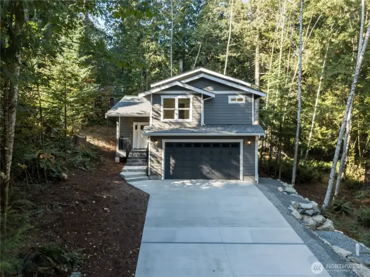 Modern newer-construction home in a private Sudden Valley setting, thoughtfully designed for comfort and connection to nature. Chic finishes, cozy fireplace for winter months air conditioning, for hot summers, with a well-appointed butler’s pantry create an easy, elevated living experience. The primary suite offers a spacious en-suite bathroom with heated floors—warm, calming, and inviting. One of the few homes in the area with an easy, non-steep driveway and quick access to the main road, yet it feels quietly tucked away. Backing to green space and a flowing creek, enjoy the sounds of nature and flowing creek from the back porch, bringing a peaceful rhythm to everyday life. Garage is wired for electric car charging.