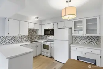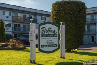 Move in ready and fully updated 2 bedroom/1 bath condo offers MINI SPLIT HEATING AND AIR CONDITIONING and is located in 3 story 55+ condominium building which is secure and locked 24/7. Belfair condominiums are located in West longview near lots of shopping including Fred Meyers, Safeway and Walmart. Lovely updated 2nd floor unit includes high end LVT flooring throughout (excluding bedrooms), white shaker style kitchen and bath cabinets plus solid surface counter tops and attractive tile back splash. Includes bathroom with walk-in shower and W/D tucked in and convenient. Enjoy your morning coffee on your private deck located off living room. Primary bedroom is roomy and includes W/I closet and carpeting. Includes second bedroom for guests or office. Easy living with elevator, assigned carport with storage, community room for parties and meetings included for owners. Comes with all kitchen appliances and Washer/dryer. Units are allowed to be rented month to month or lease.