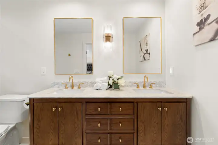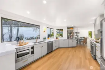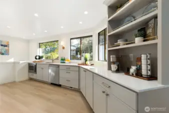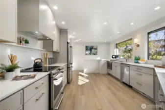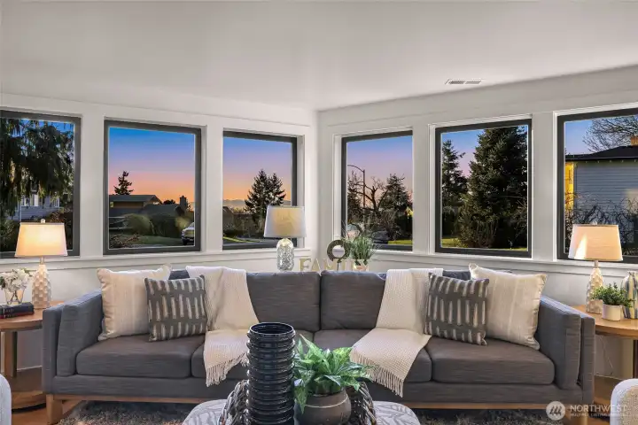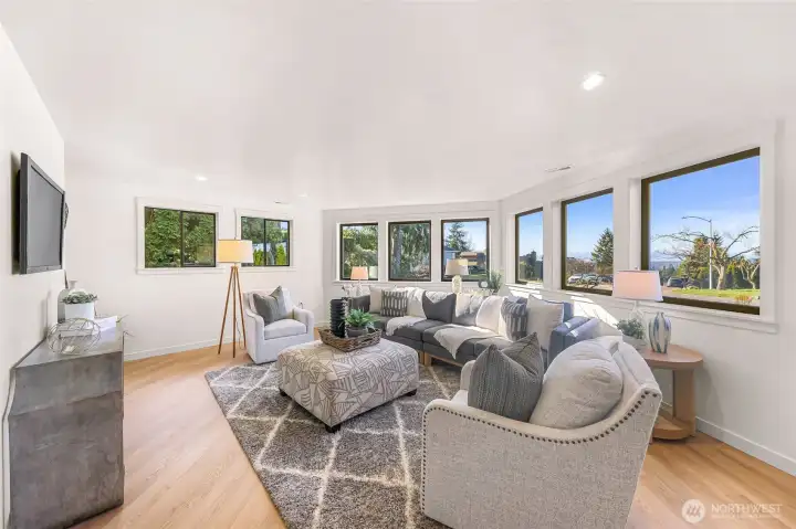 This beautifully updated home delivers a refined, modern aesthetic with high-quality finishes and thoughtful upgrades throughout, complemented by westerly views of the Olympic Mountains and stunning sunset skies, along with a partial Puget Sound view. The fully transformed kitchen features new cabinetry, elegant quartz countertops, and brand-new appliances, creating a sleek yet highly functional space ideal for both everyday living and entertaining. Throughout the home, you’ll find new tile, designer vanities, contemporary lighting, plush new carpeting, fresh interior paint, durable LVP flooring, and all-new doors and trim, resulting in a cohesive and elevated look from room to room. The lower level offers a comfortable family room, bedroom, and half bath, along with a well-appointed laundry area complete with a new washer, dryer, and laundry sink. An organized mudroom adds everyday practicality without sacrificing style, while ample storage enhances functionality. Outside, the property features a spacious, flat grassy yard—ideal for play, pets, gardening, or outdoor gatherings—along with a newly poured driveway, updated fencing, and refreshed landscaping that enhance curb appeal and outdoor enjoyment. With extensive updates already completed, this home offers turnkey convenience, modern comfort, and a polished presentation that is easy to appreciate from the moment you arrive.