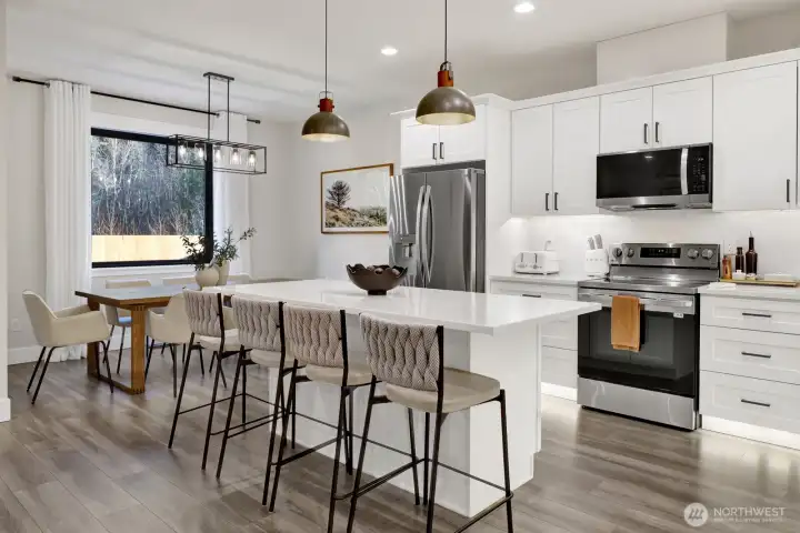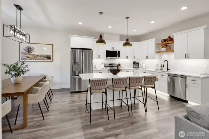 Experience refined living in this exceptional home! designed with elegance, comfort, and quality craftsmanship throughout with breath taking views.Chef-inspired kitchen showcases white shaker cabinetry, quartz counters, and high-end finishes w/ under cabinet & toe kick lighting. Radiant heated floors in bath /laundry with custom tile work provide comfort. Large Primary bath with custom shelving. Interior walls insulated for noise reduction. Thick waterproof flooring throughout.Fully insulated & heated 3 car garage elevates functionality with an epoxy-finished floor and generous storage, ideal for vehicles or hobbies. Welder hookup, electric car charger and sink. Insulated garage door 18x9 allowing for larger vehicles. Outdoors the property features: Custom stone work, large covered deck, lawn sprinkler system, hot/cold water faucets, Fully fenced in yard, additional poured concrete for expanded parking, an RV and sauna hookup, and a private hot tub, offering the perfect blend of relaxation and convenience. Thoughtfully designed and impeccably finished, this home combines modern luxury with everyday practicality—an exceptional opportunity to own a turn-key residence with premium upgrades and space to accommodate every lifestyle. Close to Mount Baker, Silver lake.