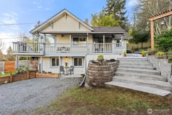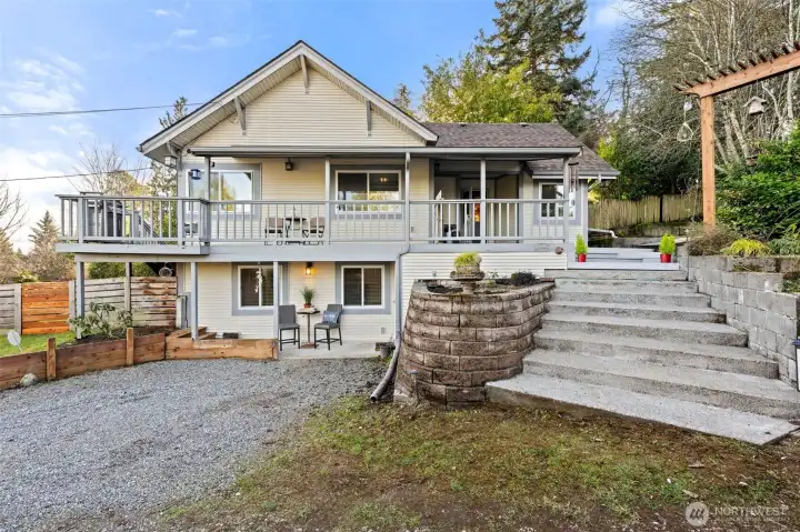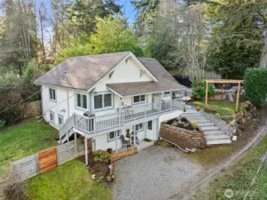 Best-in-class COMMUTE with rare flexibility for MULTI-GEN living or rental income—just 10 minutes to the city. Light-filled home featuring warm hardwoods, extra-high ceilings, and large triple-pane airport-package windows for comfort, efficiency, and quiet. Cozy pellet stove adds warmth and ambiance. Kitchen offers generous counter space, ample storage, top-line appliances, insta-hot at the sink, and a cozy built-in breakfast nook. 4 bedrooms and 2.5 baths, including an ensuite bath with deep jetted tub. Flexible living for work-from-home, guests, or extended households. Connected yet separate living space with private entrance includes mini kitchen, living room, bedroom, and bath—ideal for MULTI-GEN living or income. Currently rented at $1,500/mo, with its own patio and parking. Sunrises and partial mountain views from a private large lot that feels secluded in nature, with no neighboring windows looking in. Gated, covered deck with direct access to fenced yard (dog-friendly) supports easy indoor–outdoor living. Complete studs-out remodel in 2006. Recent updates include new roof, updated bathrooms, LVP flooring, mini kitchen, 50-gal water heater, and inspected/serviced furnace. Attic space for more storage. Well maintained and thoughtfully updated, offering rare versatility, privacy, and convenience this close to the city. This one feels like HOME.