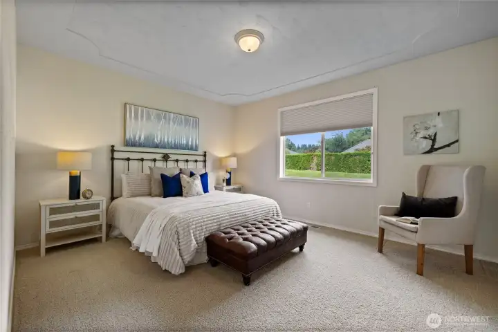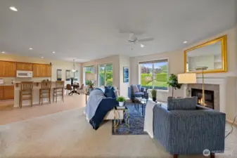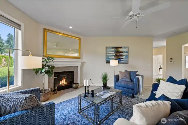 Beautifully maintained single level home in private gated Indian Summer Golf & Country Club. This home has so much to offer. An open-concept layout, featuring a living room with a gas fireplace & abundant natural light, kitchen with a walk-in pantry and island, formal dining room, a large primary suite with a walk-in closet, two additional bedrooms or use one as an office. New furnace and heat pump. Prime location near schools, shopping, trails, entertainment, I-5, and JBLM. You don't want to miss this one!
