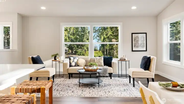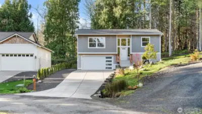 There is nothing like brand new & nothing like pride in workmanship. Split level 3 bedroom 2 bath & 1 flex room home located in a quiet cul de sac adjacent to a forested green space common area. Terraced back yard with a large level lawn for fun. View from the main floor of Port Ludlow Bay & Hansville on a clear day. Vaulted ceilings with a lovely open floor plan. Corian counter tops, skylights, 2 car garage on the lower level with over & under washer & dryer. Wired for EV & generator. Walking trails, indoor & outdoor swimming pools, tennis, pickle ball, playgrounds, exercise room, & marina are among the many amenities that come with membership at the Port Ludlow Beach Club. New construction warrantied by 2-10 Home warranty.