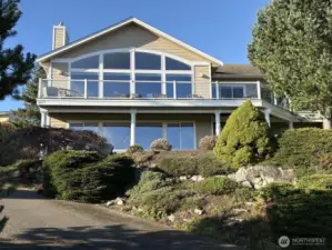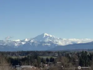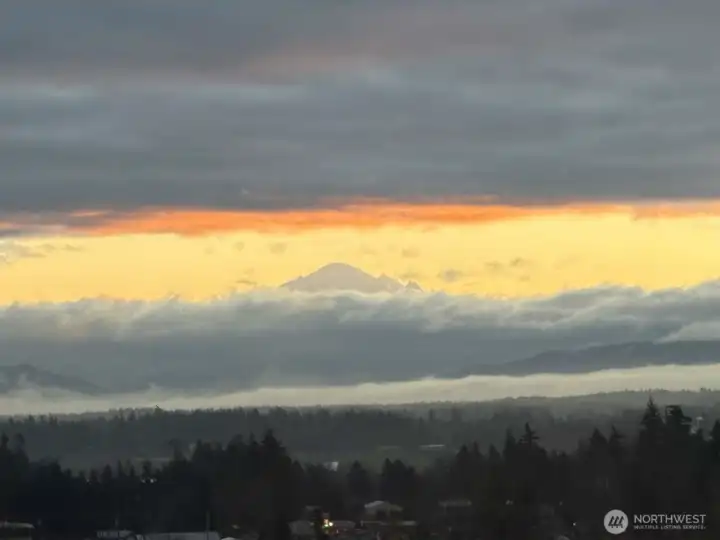 Beautifully maintained home on private road with sweeping, unobstructed Mountain Views from both levels. Open main-floor layout with vaulted ceilings, abundant natural light, flexible dining/office/library space. Primary suite on main level with jetted tub, walk-in closet, and deck access. Bright kitchen with ample counter space, opening to a large deck perfect for entertaining or relaxing above the landscaped grounds on the .67 acre lot. Fully finished lower level with 2 additional bedrooms, full bath, generous storage, and a large rec room already plumbed for wet bar with potential for multi-generational living. Heat pump/AC, storage shed, and laundry/utility on main level. Easy access to I-5. Home blends privacy, comfort, & convenience.
