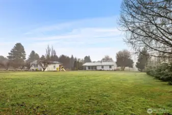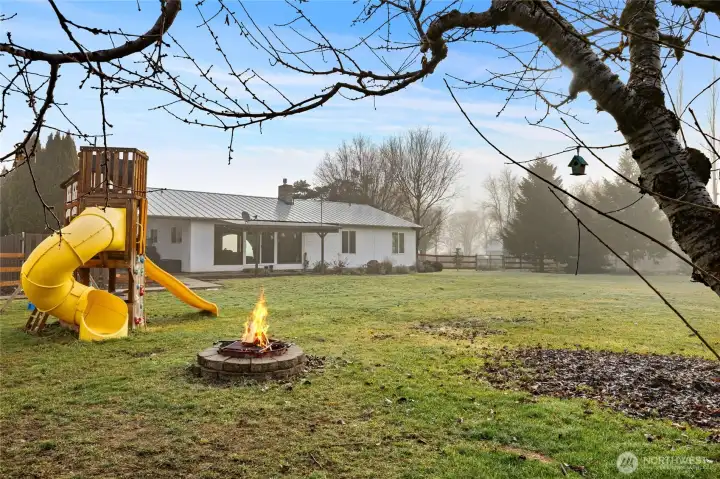 Located in the highly sought-after Grasslands neighborhood, this 1,592 sq ft rambler offers 3 bedrooms, 1.75 baths, and sits on a spacious 1.38-acre lot just minutes from town. The home features a vaulted living room with wood-covered ceiling and cozy fireplace, plus an updated kitchen with quartz countertops and an attached 2-car garage. A standout 28’x44’ shop with three roll-up doors and a loft adds incredible versatility. Outside, enjoy a fully fenced backyard, in-ground sprinklers throughout, fruit trees, two paved driveways, and a concrete covered patio. Newer solar panels add efficiency and long-term value!