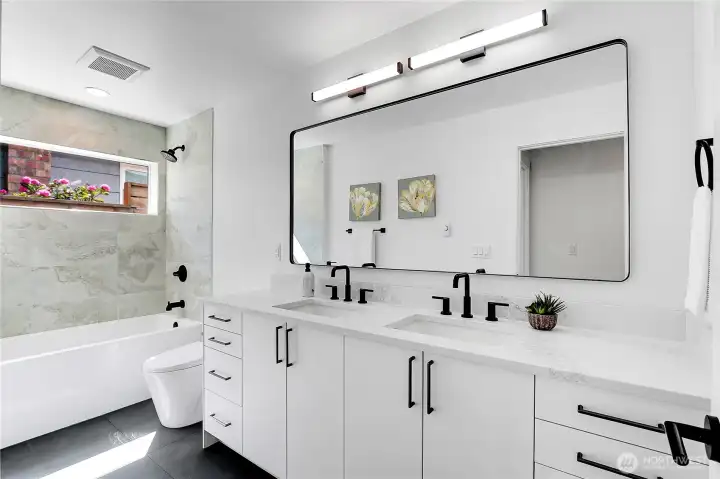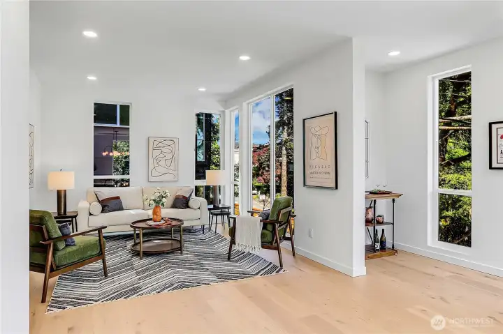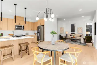 Stunning new construction in Queen Anne—just a short stroll to vibrant Fremont! This thoughtfully designed 4-bedroom, 2.5-bath home features a chef’s kitchen with slab countertops, stainless steel appliances & oak hardwood floors. Enjoy year-round comfort with energy-efficient mini-split heating and cooling. The spacious primary suite offers a walk-in closet and a luxurious tiled bath. Unwind on your private rooftop deck with sweeping views of the Cascades and Ship Canal. Convenient alley access leads to dedicated parking. Sophisticated urban living meets everyday convenience in one of Seattle’s most sought-after neighborhoods.