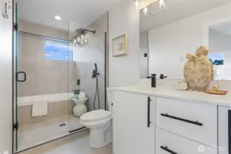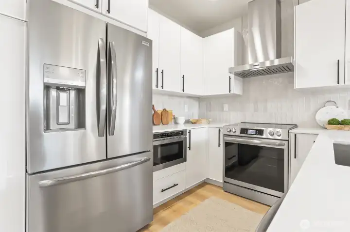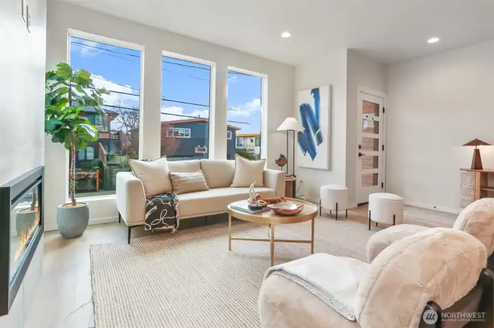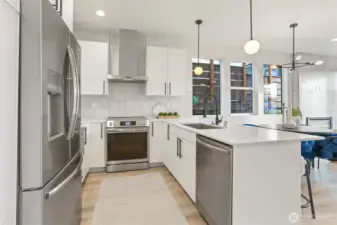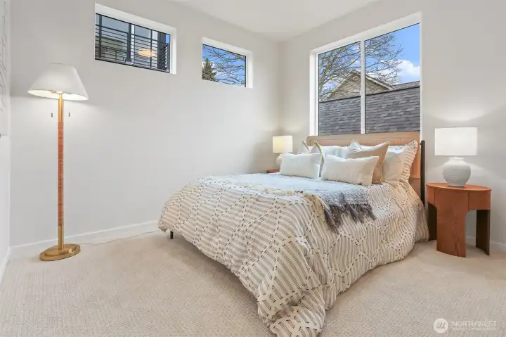 Well built new townhome by the long term local builder New City Homes. Quiet street with quick Access to Hwy 99 and freeways. No Homeowners Dues! Spacious living room, dining room open to kitchen with quartz countertops, stainless steel appliances and sunny Southern exposure windows. Upstairs are four total bedrooms, two baths including a nice primary bedroom with walk-in closet. Bright rooftop deck. Secure EV ready parking pad. Popular Ballard location nearby Gilman Playground and Pickle Ball Courts. Close to lively Ballard breweries and eateries, farmers market and Burke Gilman Trail. Move right in and be a part of the scene!