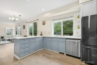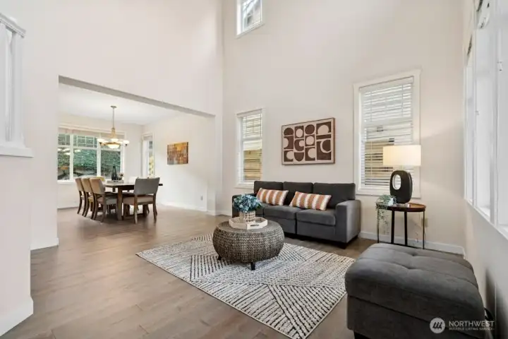 This light-filled home perfectly blends modern updates with a functional layout. The main level features stunning hardwood floors throughout, leading from a dramatic high-ceiling entry to a formal dining room and a spacious, open family room adjacent to the kitchen. The updated kitchen shines with sleek quartz countertops and SS appliances. Upstairs, enjoy a versatile loft alongside a sun-drenched, south-facing primary suite with a 5-piece bath. Significant recent upgrades provide peace of mind, including a new roof (2022), new furnace (2023), and water heater (2021). Equipped with A/C and located just minutes from I-405, this home offers ultimate comfort and convenience.