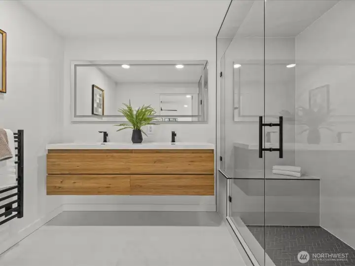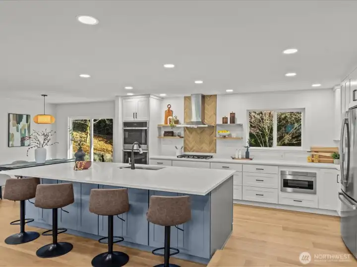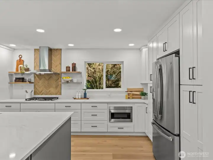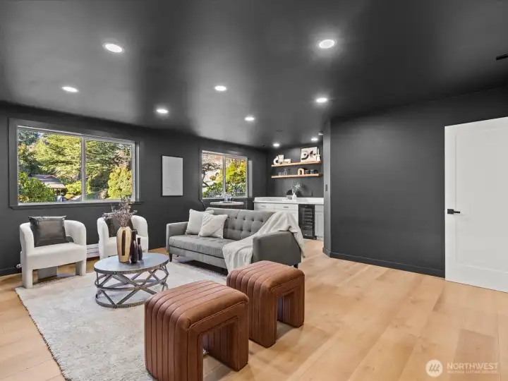Discover your Normandy Park Oasis: a move-in ready, like-new masterpiece home with stunning Sylvan views, offering state-of-the-art features such as: SMART Glass entry and SMART mirror, Bluetooth shower speakers, LED lighting, heated towel racks and radiant heat. Designer chef's kitchen with entertainment sized island and double ovens. This light-filled home boasts a great room concept floor plan and a primary suite with a high end, walk-in closet and spa-like bath. Downstairs is an over-sized, ready to go media room with TV and soundbar included and a wet bar with sink and beverage refrigerator. An ideal flexible finished room off garage for an office, gym or hobby room. Enjoy a private, fenced backyard, Trex-like deck, patio, shed and ample parking, RV/Boat extra driveway, and low maintenance fresh landscaping. Coveted Lot A Beach Rights to the Cove for Puget Sound waterfront access, event available clubhouse, tennis courts, boat launch, trails, playground and field. This home perfectly blends modern luxury with natural beauty, offering unparalleled community amenities in a serene setting. Don't miss this rare opportunity to own a piece of paradise in Normandy Park.