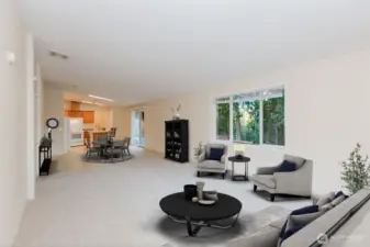 Enjoy peaceful living on nearly an acre with this well-maintained 1,620 sq ft home offering space, privacy, and versatility. The open floor plan features both living and family rooms, creating ideal spaces for relaxing or entertaining. A spacious primary suite provides a private retreat with double sinks and a walk-in shower. On the opposite side of the home you'll find two additional bedrooms and a full bath. The inviting kitchen offers ample storage, and a breakfast bar. Step outside to a large back deck overlooking the private backyard—perfect for gatherings or quiet evenings. A standout feature is the large detached 3-car garage/shop, ideal for hobbies, storage, or extra parking, with plenty of additional parking space on the property. A serene setting with room to spread out, yet close to everyday conveniences. All appliances included!