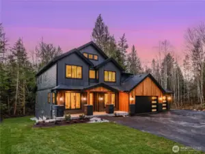 This stunning estate located on 5+ acres backing King County Forest land, this home offers the perfect balance of privacy, luxury, & convenience just minutes from I-90 between Issaquah & Snoqualmie Ridge. This custom home features 5 beds & 3 full baths, including a main-floor guest suite & dedicated office. The dramatic great room is anchored by a showstopping custom fireplace with built-in cabinetry & flows seamlessly to an oversized covered deck with built-in heaters ideal for year-round entertaining & peaceful forest views. The chef’s kitchen is truly exceptional, boasting an oversized island, commercial-grade refrigerator, 6-burner range with griddle, double ovens, built-in microwave, walk-in pantry, & rich wood cabinetry accented by a beautifully painted island. The spacious dining room easily accommodates gatherings of ten or more, framed by oversized windows & a slider that opens to the expansive entertaining deck. Upstairs, you’ll find three generous secondary bedrooms, a utility room, & a private primary suite retreat. The spa-inspired bath showcases a soaking tub, oversized walk-in shower, double vanity with custom cabinetry, & elegant tilework, while the enormous walk-in closet features built-ins & a large window for abundant natural light. An oversized 3-car garage, ample space for RV parking, & room to build a shop/garage. Wrapped in stone and wood accents that embody true Northwest design, Offering refined living with a quick commute to Issaquah and Bellevue.