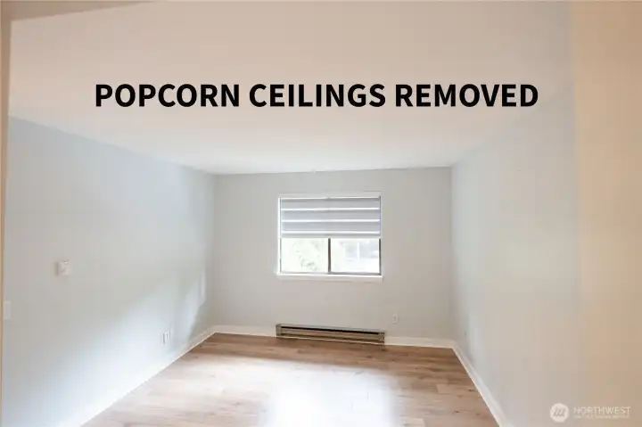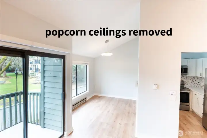 Price Improvement! Popcorn ceiling professionally removed, now featuring a smooth, modern finish. This rare 2-story top-floor condo was remodeled in 2025 with fresh paint, new flooring, updated kitchen, and stylish blinds. Vaulted ceilings and abundant natural light create an open feel, complemented by a cozy fireplace. Primary suite with en-suite bath plus second bedroom and full bath. Minutes to Totem Lake Village and easy access to I-405!