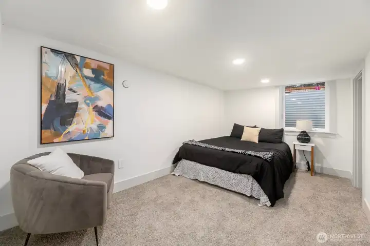 $5k Community Reinvestment Act Buyer Credit! This mid-century 4BR/2BA masterpiece in M2 at Haller Lake, a condo community, has been meticulously rebuilt from the studs up, offering the peace of mind of new construction combined with the soul & character of a classic era. Perfectly positioned on a lush, fully fenced 5,000 sq ft corner lot directly across from Northacres Park, this home is a private sanctuary. The heart of the home is a chef-inspired kitchen, boasting custom cabinetry, sleek Quartz surfaces & premium SS appliances. The open-concept living area, anchored by a cozy fireplace and bathed in natural light, creates an inviting space for entertaining. The main floor features two spacious bedrooms and a designer luxury bath with high-end finishes. The versatile lower level features two additional bedrooms, a large bonus room with fireplace perfect for a home theater or gym and a dedicated laundry. This comprehensive renovation leaves no stone unturned: all-new electrical, plumbing and mechanical systems, a new roof, Milgard windows and high-efficiency mini-splits for year-round climate-controlled comfort with A/C. Step outside to your professionally landscaped yard with 3 off-street parking spots, just moments from the shores of Haller Lake and the local community garden. With effortless access to I-5, the light rail and Northgate’s vibrant dining and shopping, this is the epitome of modern Northwest living. Don't miss this rare blend of style, value, and location!
