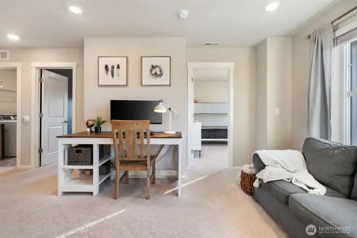 Welcome to this beautiful newer home built in 2023, offering comfort, style and stunning mountain views. This 3-bedroom, 2.5 bath home features a spacious and functional layout, with the primary suite including its own private bathroom and walk-in closet. Upstairs you will find two other bedrooms, full bathroom and a conveniently located laundry room. The upper living area is perfect for an office or additional media space. The main level has a beautifully customized entry with an open concept kitchen, including quartz counters, a large island with seating, a walk-in pantry, half bath and a dining area. The downstairs living room leads outside to a fully fenced backyard, complete with garden beds, bursting full of bulbs and ready for a spring bloom. There is plenty of parking with an attached two car garage, two spots in front of the garage and available street parking. Located close to grocery stores and shopping centers. With a modern design, breathtaking mountain views and a thoughtful layout, this home is the perfect blend of beauty and practicality.