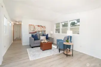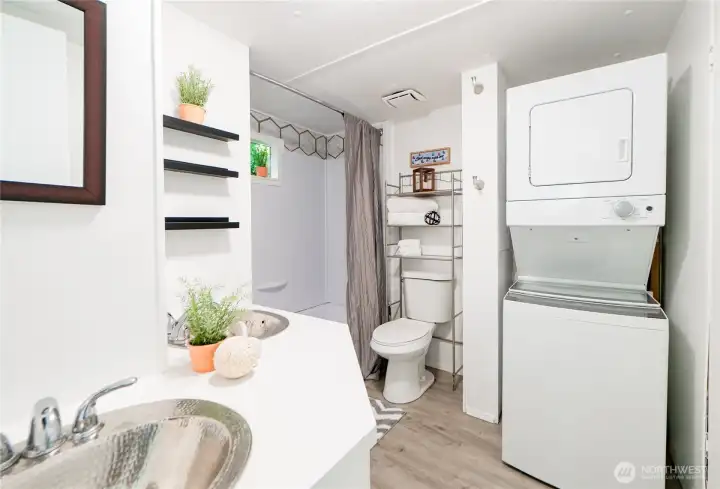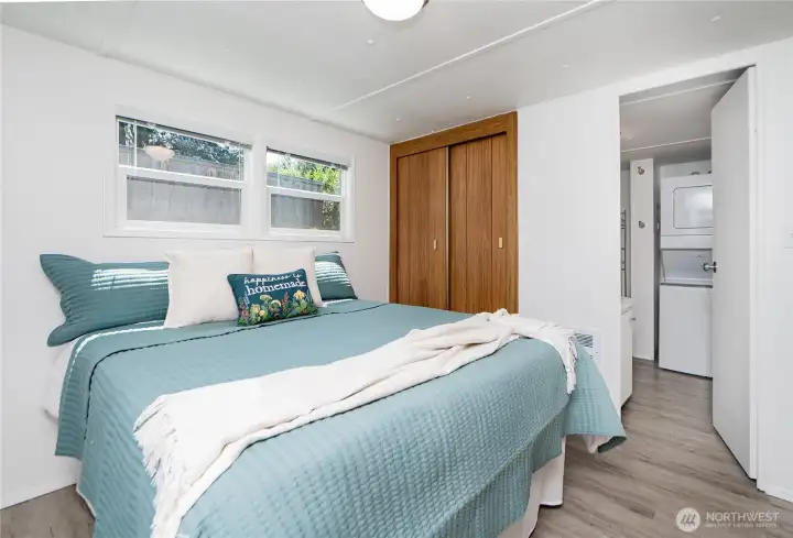 This thoughtfully updated 2-bedroom, 1-bath home in Crest Haven Park offers a bright and comfortable living space just minutes from Lake Padden. Recent improvements such as fresh paint, updated flooring, and newer windows, create a clean, modern feel while preserving the home’s charm. The kitchen includes stainless steel appliances and opens to a cozy living area. A newer heat pump and in-unit washer and dryer add comfort and convenience. The sturdy covered porch serves both entrances and extends your living space year-round. Affordable and move-in ready, this home is a great find in a desirable, well-maintained community.