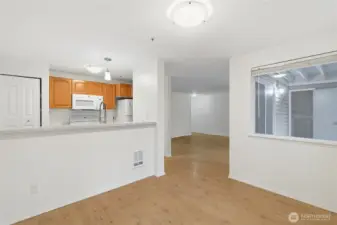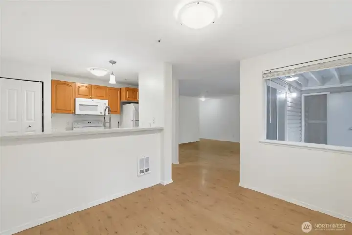 Wonderful ground floor home at Balaton Condominiums in the heart of Lake Forest Park. Enjoy a central location just minutes from I-5, Lake Forest Park Town Center, parks, and Lake Washington. This beautifully updated home features durable hard surface flooring throughout and brand-new quartz countertops in both the kitchen and bathrooms. The bright, open living area offers a cozy fireplace and access to a private patio that backs onto peaceful community green space. Two generous bedrooms, including a primary suite with ensuite bath and walk-in closet. In-unit washer and dryer for added convenience. Enjoy fantastic amenities including pool, hot tub, sauna, gym, and clubhouse. Well-run HOA with no rental cap—great for owners or investors!