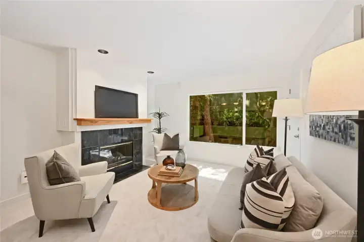 Discover an exceptional urban sanctuary in this lovely level-entry condo in a 10-unit boutique bldg. This unit is move in ready with new carpeting and fresh paint throughout. The updated kitchen is a cooks delight with sleek granite countertops, newer appliances and gorgeous cherry cabinets! A big bedroom offers dual closets for ample storage and sliders to the charming patio/garden space. A sizable full bath is adjacent to in-unit laundry and office space. The lobby elevator takes you down to the secure garage, storage unit and EV charger. Adjacent to 17 acre Kiwanis Ravine with a short walk to magnificent Discovery Park, The Ballard Locks, local shopping and bus service just steps away to whisk you downtown! The building has a new roof and low HOAs that cover everything except electricity. Comfort and affordability await!