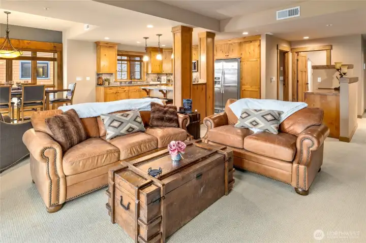 Welcome to effortless mountain living in this spacious 2-bedroom, 2-bath Trailhead condo offering over 1,400 square feet of open, light-filled living space. Designed for comfort the open floor plan flows seamlessly between the kitchen, dining, & living areas, perfect for entertaining or relaxing after a day of adventure. One of the best values in Suncadia for its size, this condo offers exceptional space for game nights, movie nights, or simply unwind together. A built-in desk creates an ideal work-from-home or study nook. Ideally located in the heart of Suncadia, this residence is just steps from trails, dining, golf, & the vibrant new social retail village. From the moment you arrive, it feels worlds away from the hustle and bustle of city life—yet with the rare convenience of parking once in your secure underground parking & walking to all of Suncadia’s premier amenities. Enjoy exclusive access to Trailhead’s private pool & hot tub, along w/ BBQ area & firepit's to enjoy making smores. The primary suite features a spa-inspired bathroom with a European soaking tub, perfect for relaxing after a day on the trails or golf course. Step outside to two separate decks, offering the perfect setting for morning coffee or an evening glass of wine while enjoying the fresh mountain air. Whether you’re seeking a full-time residence, vacation retreat, or investment opportunity, this condo delivers the ultimate resort lifestyle with unmatched proximity to Suncadia’s premier amenities.
