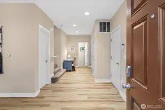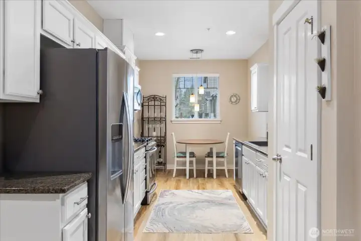 This truly beautiful, thoughtfully remodeled home offers exceptional comfort, style, and accessibility. Spacious primary bedroom with en-suite bathroom on the main level provides ideal one-level living with ADA-friendly features, including no-step entry and wide doorways throughout. The light-filled main floor showcases 9' ceilings, a gorgeous stone fireplace, and a stunning kitchen with stainless steel appliances and granite countertops. Upstairs, you will find two very generously sized bedrooms, a full bath, and abundant closet storage. A wide staircase makes the space feel grand and spacious.Complete with an oversized two-car garage, this home is as functional as it is elegant. No rental cap! Ample guest parking and HOA covers all exterior maintenance!