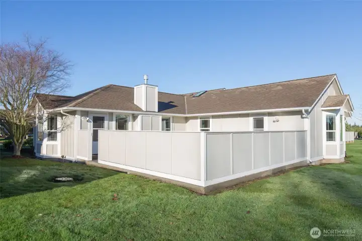 Mountain view single-level 3-bedroom, 2-bath condominium with a 3-car garage, located in the desirable Sherwood Village community. Abundant natural light fills the home through numerous windows, skylights, and solatubes, creating a warm and inviting atmosphere throughout. Hardwood floors enhance the living area, kitchen, and hallways. The kitchen features newer cabinetry with pull-out drawers, a range hood, and a spacious walk-in pantry. The living area offers built-in speakers, a cozy propane fireplace, and direct access to a private, fenced patio overlooking the green space. The generous primary suite includes a charming bay window, an ample walk-in closet, and a private door leading to the patio. The primary bath is well-appointed with tile floors, a walk-in shower, and double sinks. A functional laundry room provides a utility sink, under-cabinet lighting, and upper cabinets for storage. There is an additional utility sink in the garage and the third bay is heated and finished, complete with a Solatube—ideal for a workshop, hobby space, or extra storage. Conveniently located near shopping, medical facilities, the Olympic Discovery Trail, and the YMCA. Come take a look—you’ll be glad you did!