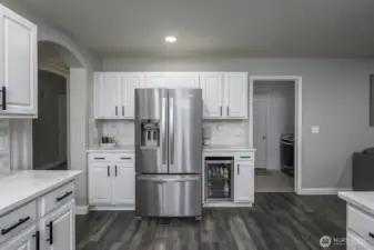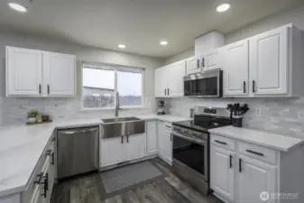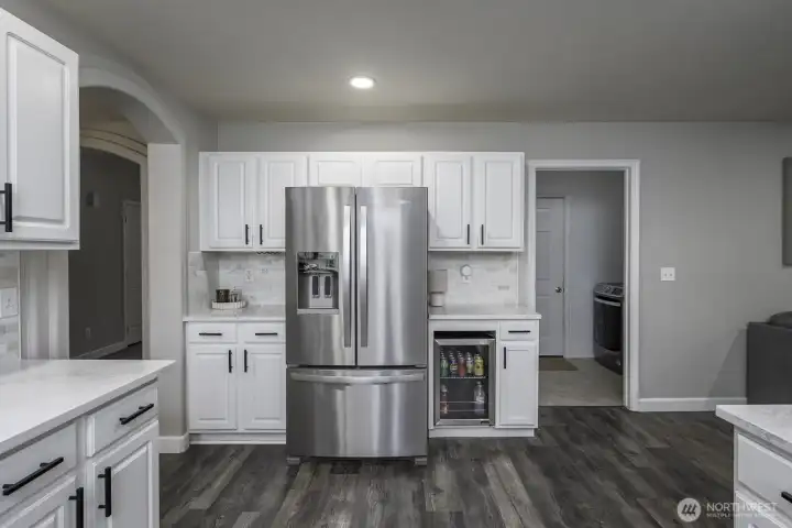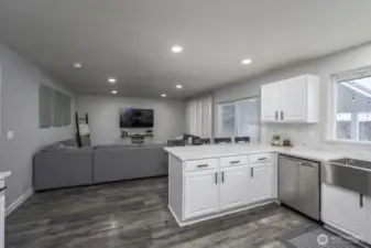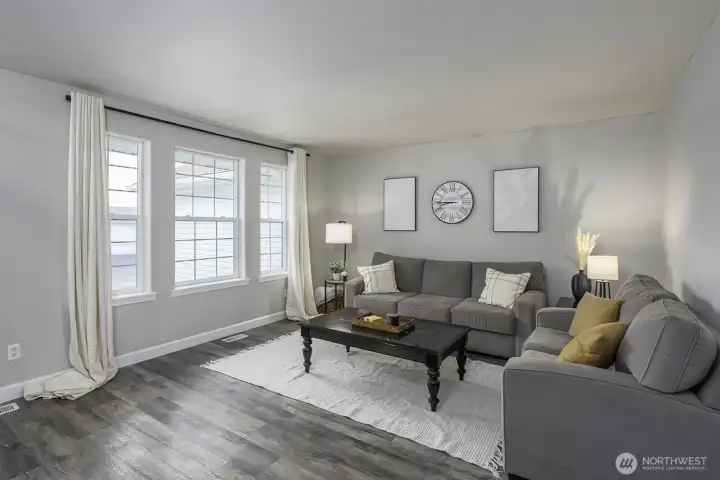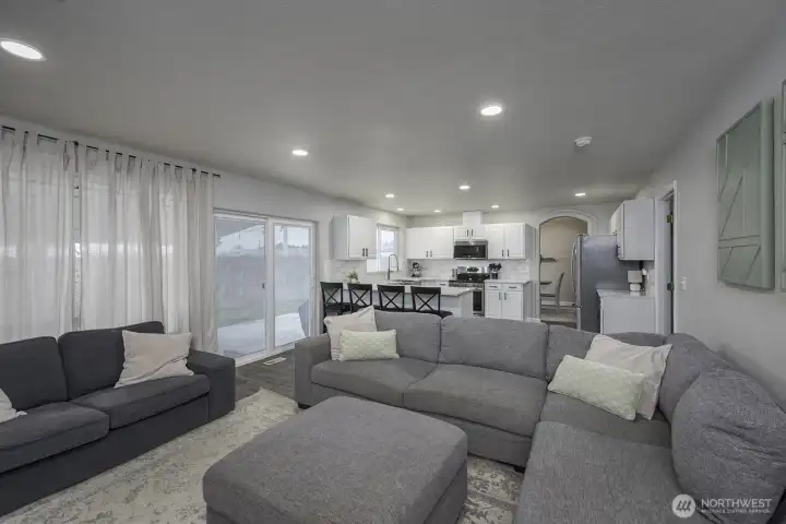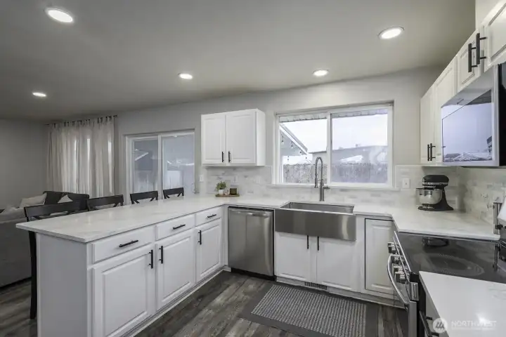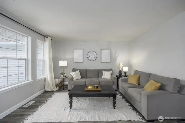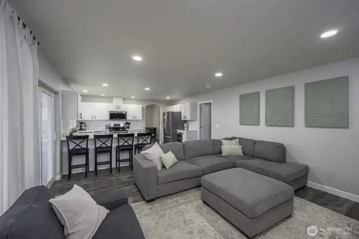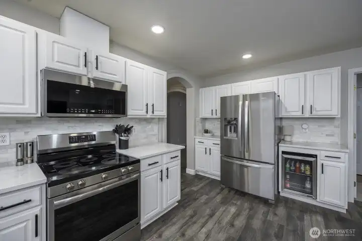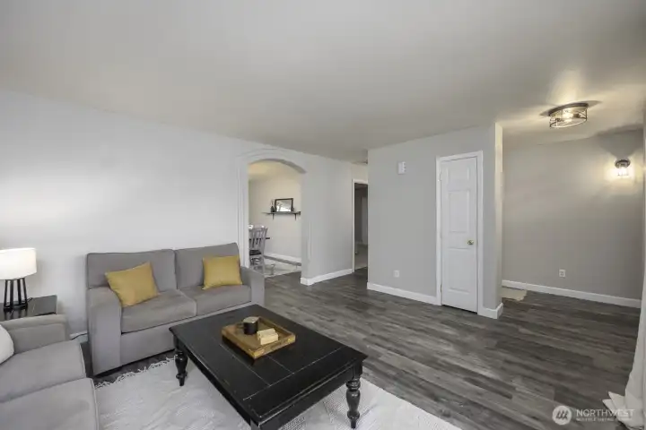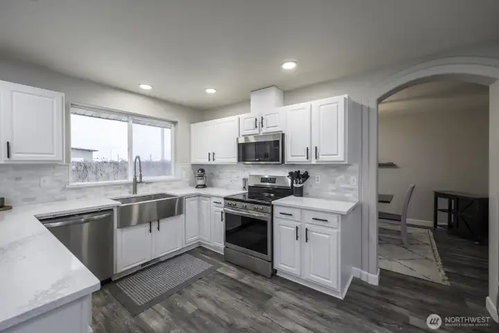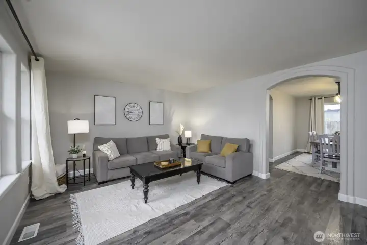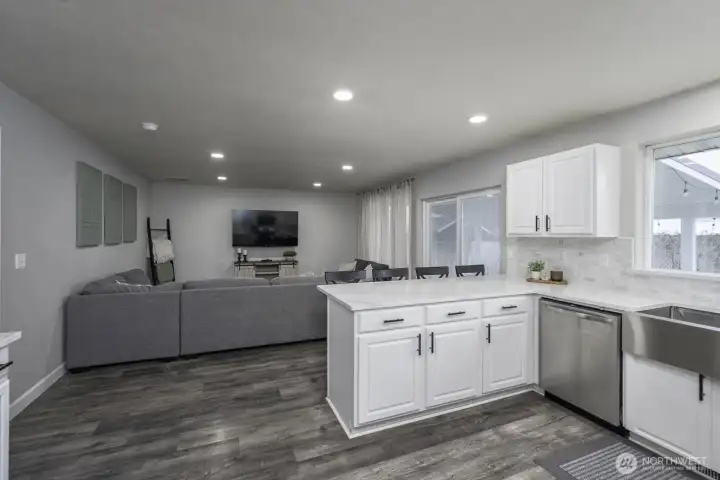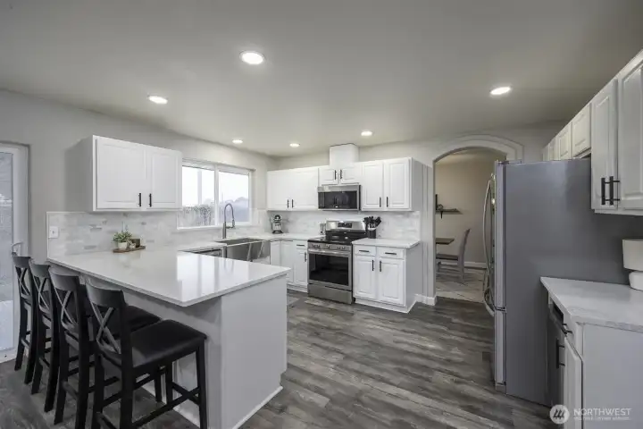 Welcome home to this beautifully updated one-level rambler tucked away on a cul-de-sac. This 3-bedroom, 2-bath residence offers thoughtful upgrades throughout and an easy, open layout ideal for modern living. The recently updated kitchen shines with new quartz countertops, classic subway tile backsplash, stainless steel appliances, a beverage fridge, and a convenient eating bar—perfect for entertaining. Luxury vinyl plank flooring flows through the main living areas, complemented by newly installed recessed lighting and stylish updated light fixtures. Enjoy the flexibility of two separate living spaces, formal dining room, freshly painted interiors, and updated bathrooms featuring quartz countertops, new sinks, mirrors, and light fixtures. Many windows have been replaced, including the sliding glass door that opens to a covered patio—ideal for indoor/outdoor living. Step outside to a fully fenced backyard & large covered patio. This move-in-ready home combines comfort, style, and functionality in a desirable location.