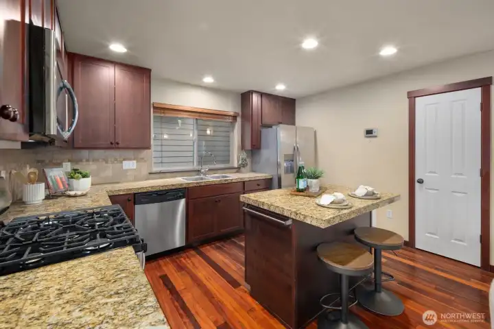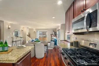 No HOA and an easy 5% cap rate make this North Seattle townhome a perfect starter home or investment property, supported by historically low vacancy and strong rental demand. This thoughtfully designed home offers an open main living level anchored by a cozy gas fireplace, ideal for everyday living or entertaining. The kitchen features newer stainless steel appliances, with a convenient powder room on the main floor. Upstairs are well-proportioned bedroom suites, including one with a walk-in shower and another with a tub, plus upstairs laundry for added convenience. New carpets throughout create a fresh, move-in-ready feel. Efficient hydronic in-wall heaters provide comfortable, even heat, and the home is fiber-ready for high-speed internet. Enjoy a front yard paved patio for relaxing, along with an attached garage for secure parking and storage. Shared parking is available in front. Convenient access to Aurora Ave, I-5, and RapidRide E Line makes commuting easy. A versatile home with strong fundamentals in a well-connected Seattle location.