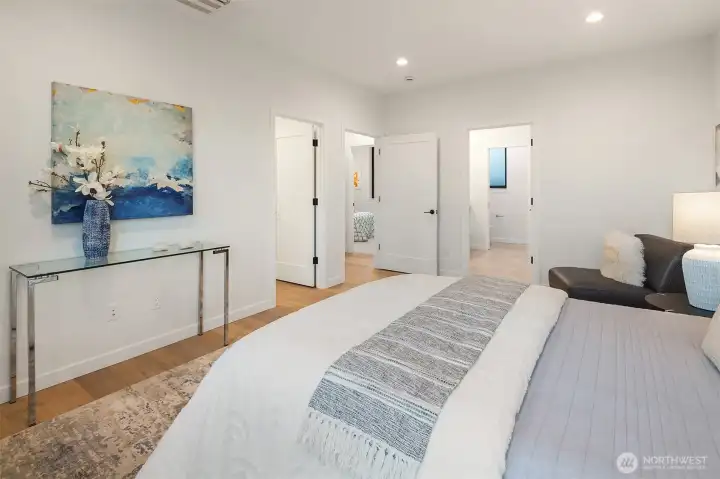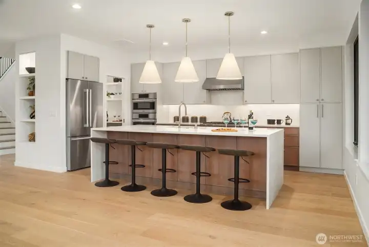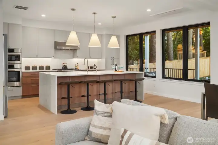 This gorgeous new NW Contemporary home has it all! Enjoy the gourmet kitchen with oversized quartz waterfall island, Bosch/Wolf appliances, and walk-in pantry. Find your focus in its sunlit office and relax in the large living room with fireplace, built-ins, and wide-plank hardwood floors. Entertain in the dining room with panoramic views and nano doors for seamless indoor/outdoor living onto the covered deck and huge backyard. Upstairs has 4 light-filled bedrooms including a primary suite with a five-piece heated-floor bath. The lower level contains a 1 bed/1 bath suite, 2nd full kitchen, living room, and separate entry, plus a rec room, 2-car garage, and mudroom. Perfectly located near Bryant Park, PCC, Seattle Children’s, and U-Village.