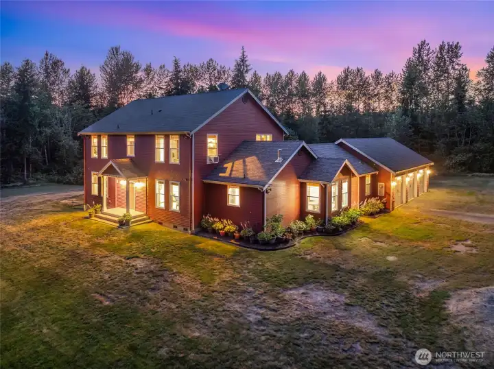 Welcome to this luxurious estate nestled on 20 acres of pristine land. The primary bedroom is a true oasis with two walk-in closets and a lavish 5-piece bathroom featuring a jetted tub. The gourmet kitchen is a chef's dream with double ovens, granite counters, stainless steel appliances, and a walk-in pantry. White oak hardwood floors add warmth and sophistication. Enjoy year-round comfort with geothermal heating and cooling, as well as radiant heat and air conditioning. The property features a massive 30x60 carport, and a generator ensures peace of mind during power outages, and a three-car garage provides ample space for parking and storage.Truly a perfect blend of luxury, comfort, and functionality.