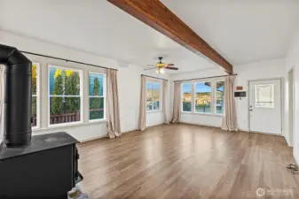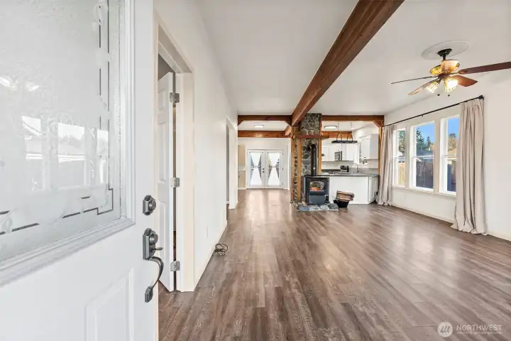Step into timeless charm and modern comfort in this beautifully updated 1921 Craftsman, just a short walk from adorable downtown Eatonville. This home blends historic character with thoughtful updates, offering three bedrooms plus a bonus room that can easily serve as a 4th bed. Main floor features an open-concept kitchen and living room, creating an inviting space for everyday living and entertaining. French doors lead to a spacious deck overlooking the fully fenced backyard—perfect for gatherings, play, or quiet evenings outdoors. Full bath w/ a classic clawfoot tub completes the downstairs. Upstairs, you’ll find two bedrooms with closets, a generous bonus room & a beautiful remodeled ¾ bath. Backyard is ready for spring & summer enjoyment, complete with a firepit for cozy nights under the stars. This charming Craftsman offers space, character, and walkability in one delightful package.