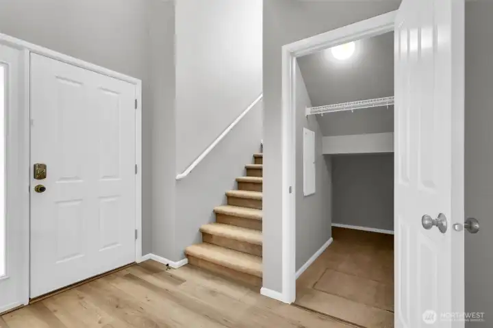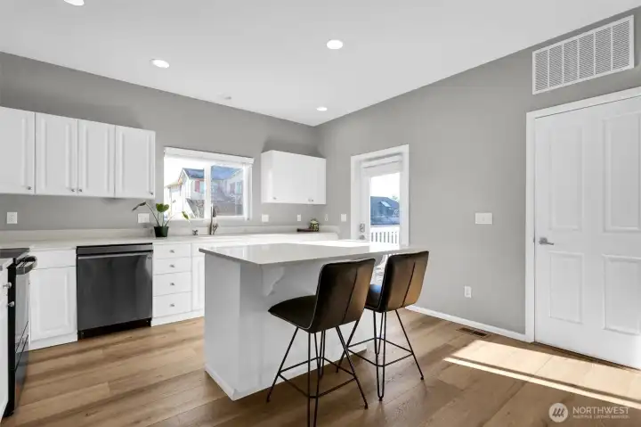 Welcome to Woodside, a beautifully maintained 3-bedroom, 2.5-bath home on a prime corner lot. This 1,620 sq ft residence offers an open, light-filled floor plan that feels both spacious & inviting from the moment you step inside. New luxury vinyl plank flooring on the main floor adds a modern touch & durability throughout the main living areas. The updated kitchen features quartz countertops, a center island, stainless steel appliances, & ample cabinetry, opening seamlessly to the living & dining areas. A charming built-in buffet & cozy gas fireplace create the perfect setting for both everyday living & entertaining.Upstairs, the generous primary suite includes a private ensuite bath & an extra-large walk-in closet. Two additional well-sized bedrooms, a full bath, & a convenient utility room complete the upper level, offering flexible space for guests, home office, or hobbies. Recent upgrades including newer furnace, A/C, appliances, water heater, fresh interior paint, & exterior paint give this home a near-new feel. Pride of ownership is evident throughout, making this home truly move-in ready. Located in the highly desirable Woodside neighborhood within the Fairwood community, this home is surrounded by parks, trails, playgrounds, & nearby amenities, creating an exceptional lifestyle. Enjoy quiet streets, well-kept surroundings, & easy access to shopping, dining, & major commuter routes.